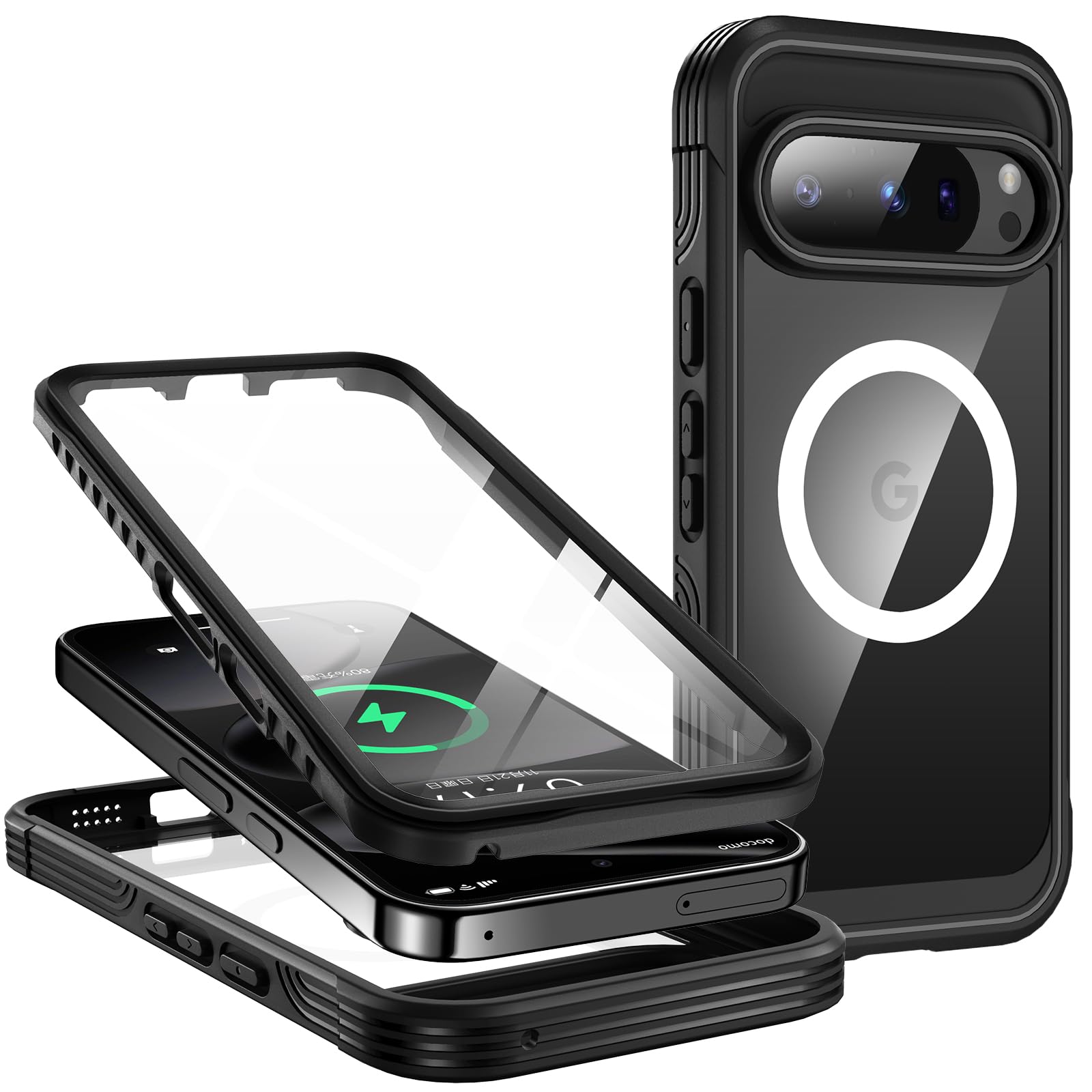 【両面保護・米軍MIL規格・Magsafe対応】CSZENMEN Google Pixel 10/10 Pro 用 ケース マグネット搭載 [本体の色・ソフトシリカゲルバンパー]耐衝撃 ワイヤレス充電対応 黄変防止[内蔵型スクリーンプロテクター・極透明9H強化ガラス]防塵 指紋防止 マグセーフ対応 スマホケース ピクセル10/10プロ カバー「ブラック」