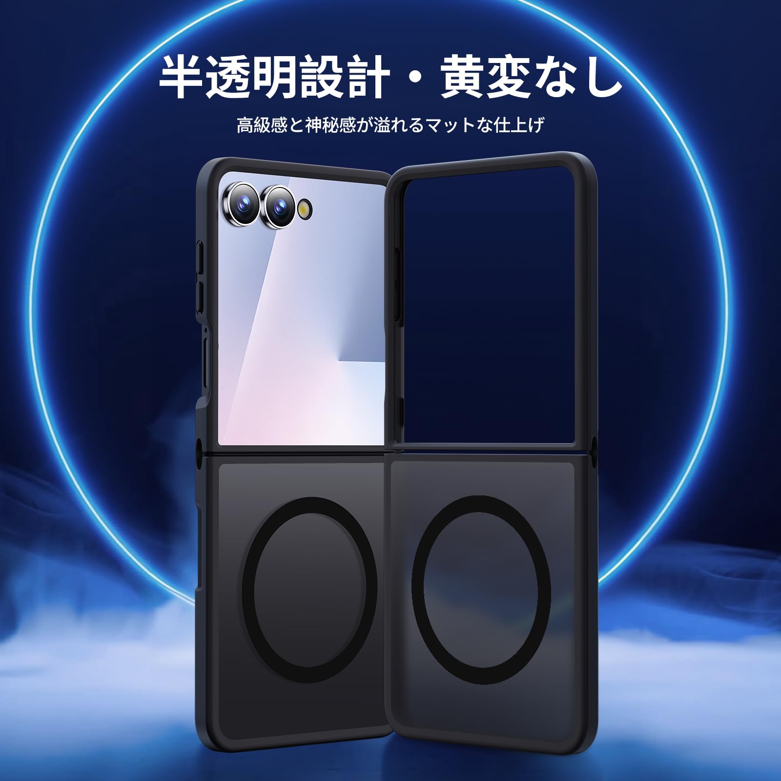【MagSafe対応・米軍規格】Holidi Galaxy Z Flip7 ケース MagSafe マット感 マグネット搭載 米軍MIL規格 全面保護 ワイヤレス充電 黄変なし 二重構造 ギャラクシーZ Flip7 ケース Magsimpl-Series 半透明・ブラック