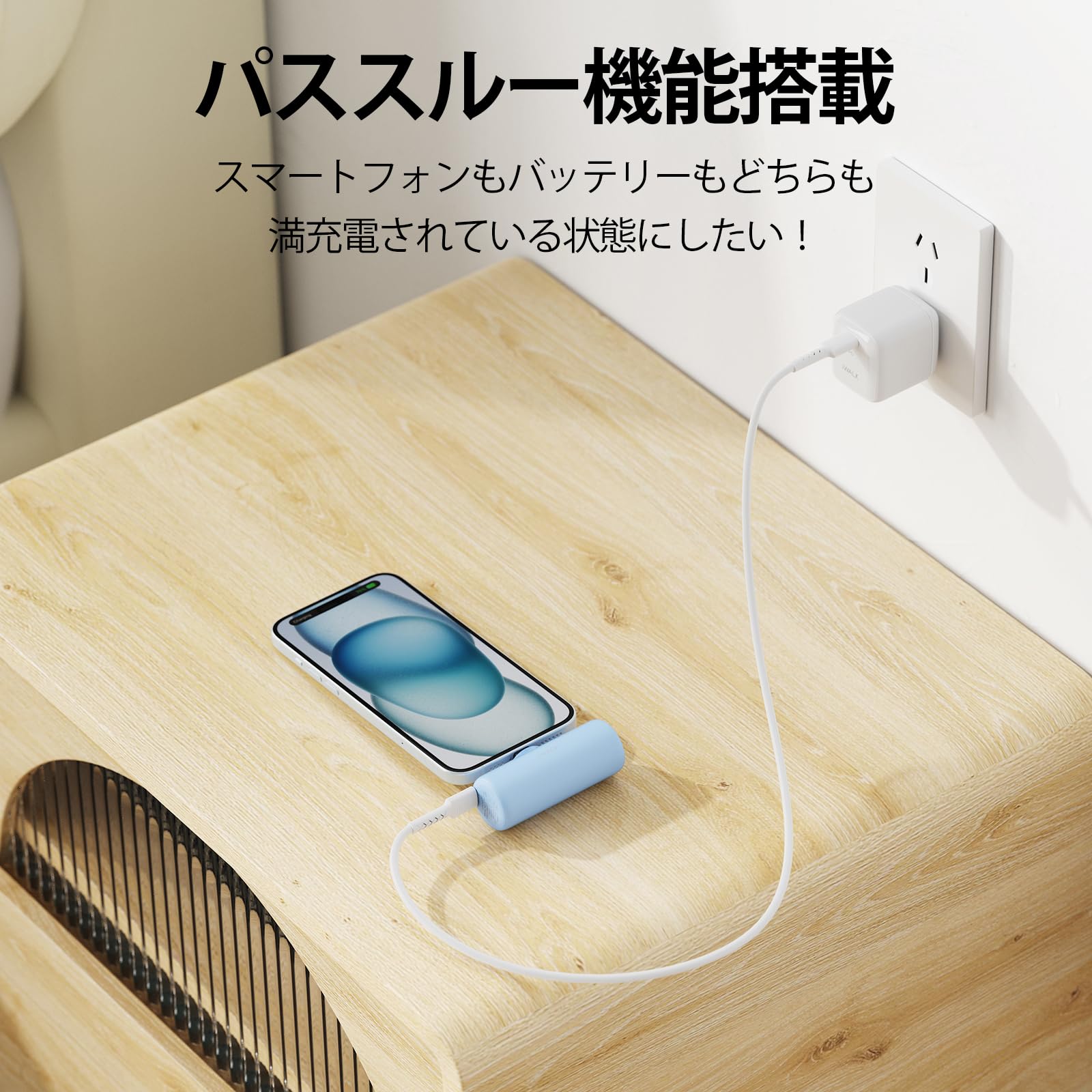 * 【低電流モード機能・パススルー機能搭載】4500mAhのちょうどいいバッテリーを内蔵しており、iPhone 16を約0.75回充電することができます。イヤホンなどの小型電子機器を充電する際、電源ボタンを3秒間長押しすると最適な充電速度に切り替わるため、機器への負担を軽減し、安全に充電できます。さらに、充電中に本体への給電も行えるパススルー機能を搭載しているため、便利さと使いやすさを両立。