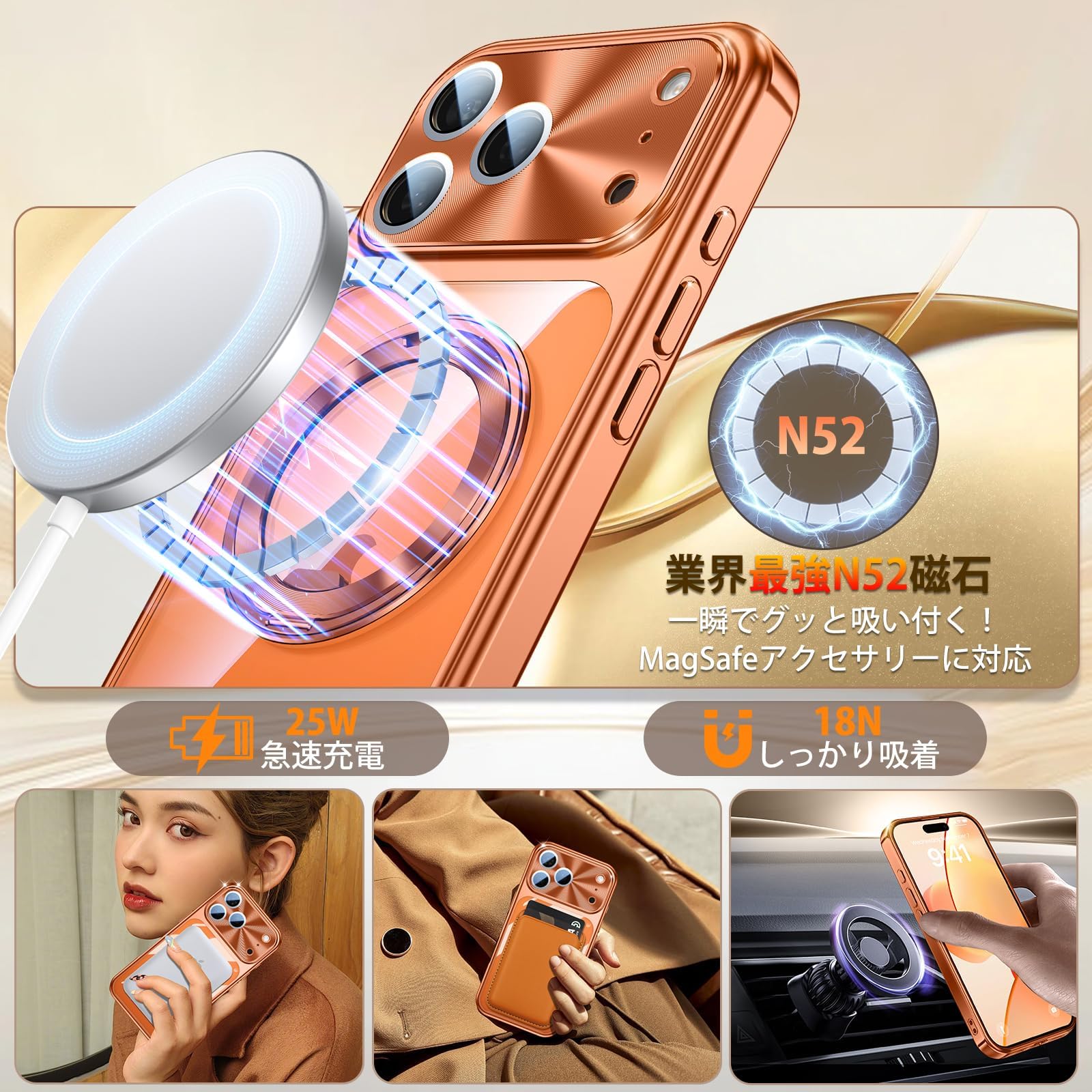 * 【MagSafe対応・N52超磁力実現】リングに業界最先端のN52磁石を内蔵、吸着力が大幅に向上。ガッチリと自動でMagSafe充電位置にピタッと合い、微細なズレもなし!ケースを装着したままでワイヤレス充電可能。瞬時に安定した吸着力でアイフォン 17プロマックスをしっかりホールド、揺れる車内でも一切落ちることなく、安全リスクをゼロに。ワイヤレス充電、モバイルバッテリー、車載ホルダー、ウォレットなどのMagSafeアクセサリーをあいふおん17 pro maxと自由に組み合わせ可能、17promaxの多様な使用体験を楽しめる。