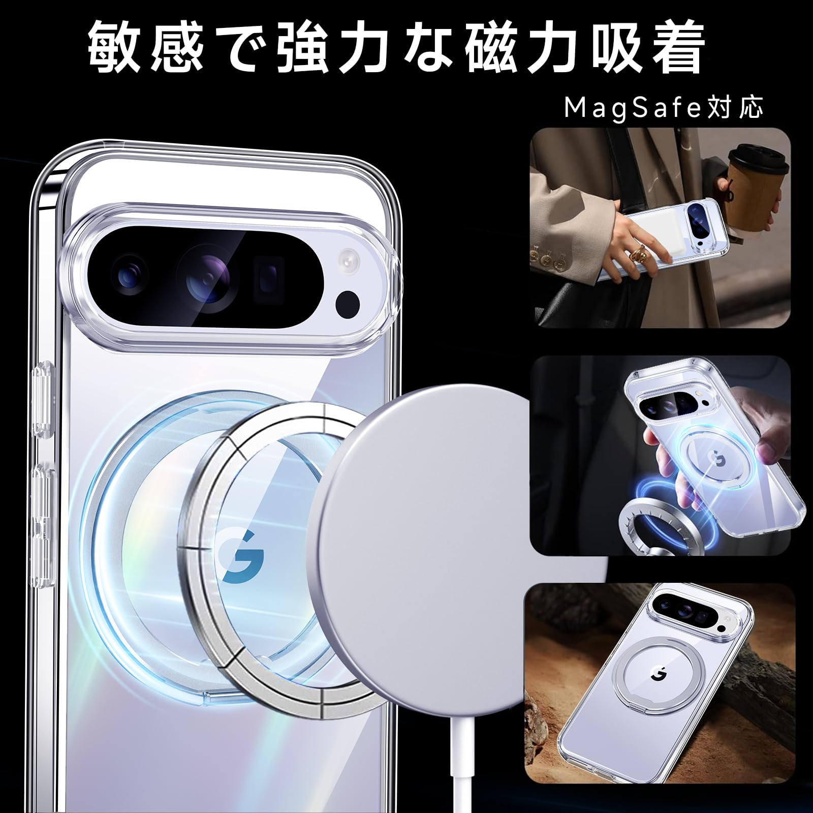 【米軍MIL規格・Magsafe対応】Google Pixel 10 / 10 Pro 用 ケース MagSafe対応 リング 360°回転スタンド機能 縦横両対応 透明 黄ばみ防止 ワイヤレス充電 レンズ保護 耐衝撃 携帯カバー グーグルピクセル10/10プロ カバー マグネット搭載 車載ホルダー マグセーフ対応 おしゃれ (クリア)
