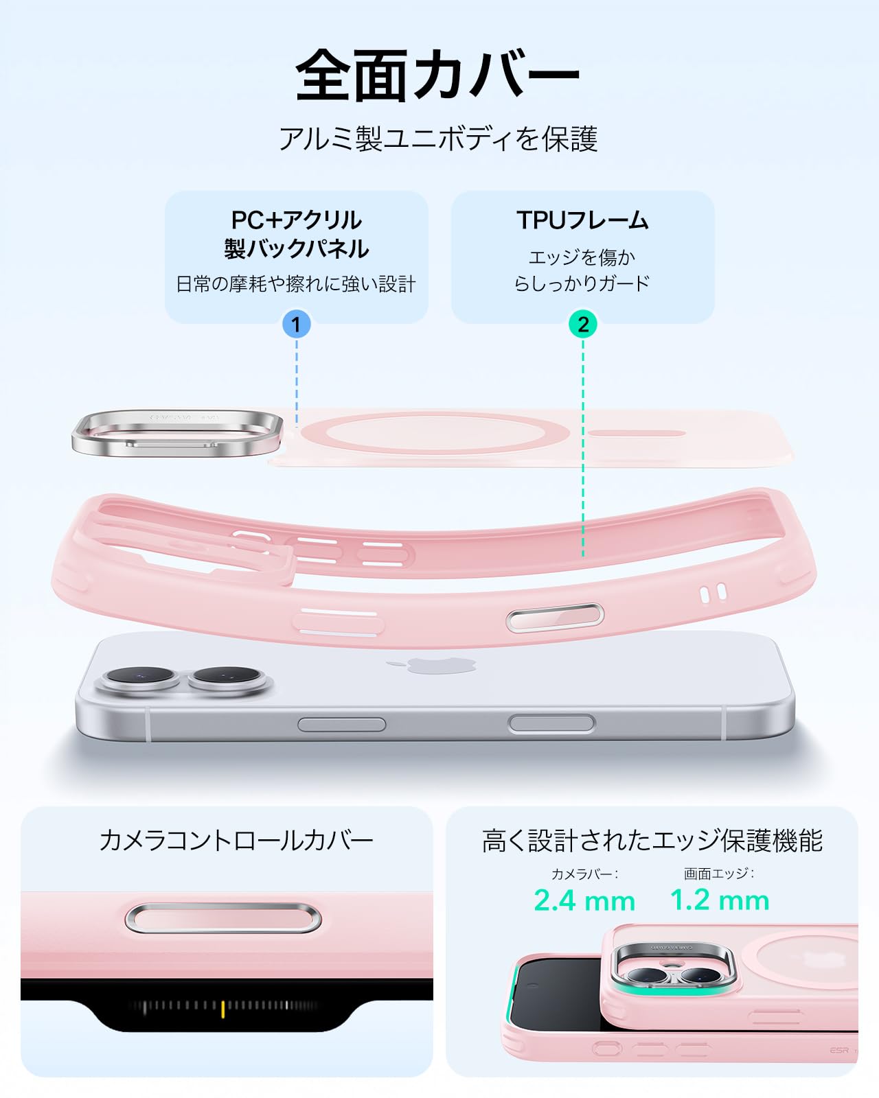 【デザイン受賞シリーズ!】ESR iPhone 17 ケース MagSafe対応 3倍米軍MIL規格 カメラボタン付き 隠しスタンド 調整可能 ワイヤレス充電 エアガードコーナー 耐衝撃 傷防止 軽量 マグネットスマホケース 高耐久性 Qi2.2対応 最大25W高速充電 いphone17ケース アイフォン17専用Classicシリーズ(フロスト桜ピンク)