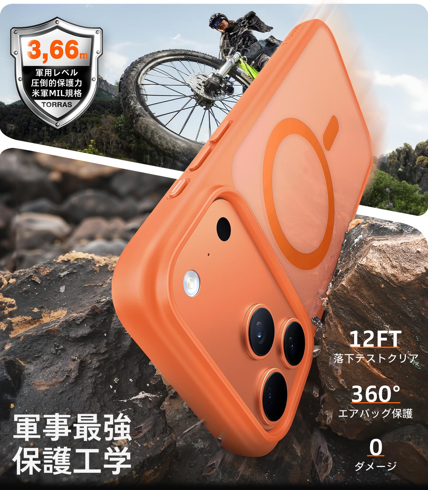 * 【落としても安心!360°エアバッグ搭載】MIL規格4x耐衝撃設計で高さ12フィート落下テスト済み。TPU+TPE素材が衝撃を吸収・分散し、独自360°+XShockエアバッグが圧力を広範囲に分散。実験室テストで衝撃を約30%軽減、大切なiPhone をしっかり守ります。対応機種:For iPhone 17 pro max ケース