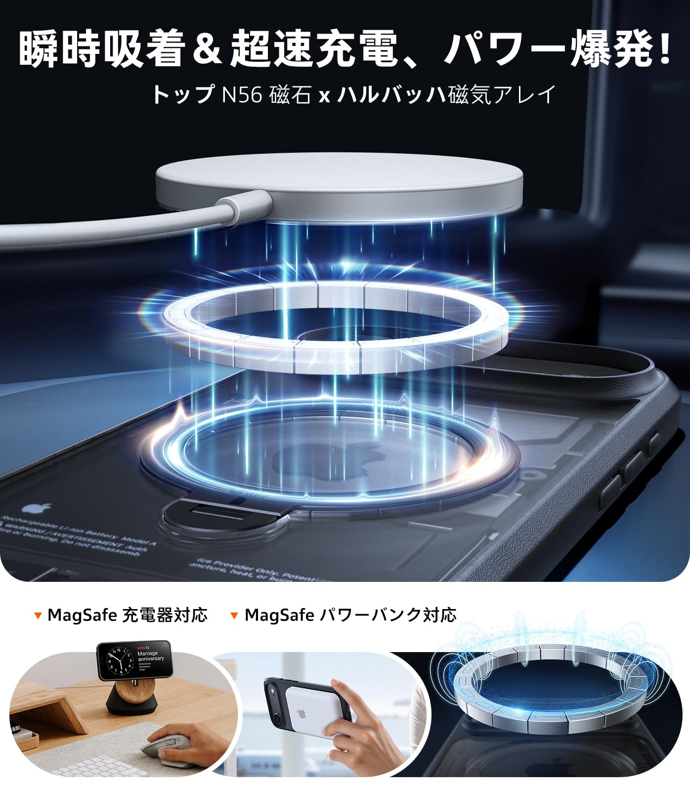 * 【N52 強力マグネット|車載・ワイヤレス充電両対応】TORRAS技術に基づくN52マグネットは最適な配列で設計されて、他のケースの磁石より40%も強い。通勤時、車載ホルダーに近づけるだけで吸着し、急ブレーキや悪路でも落ちない。片手でナビ調整や通話が可能で、ケーブルの手間なく視線を逸らさず安全。交差点でもナビがしっかり固定され、注意力が散漫にならない。到着後はワンタッチで取り外し、自宅ではワイヤレス充電も簡単。ケーブルレスで運転が集中的に、通勤も楽になる。