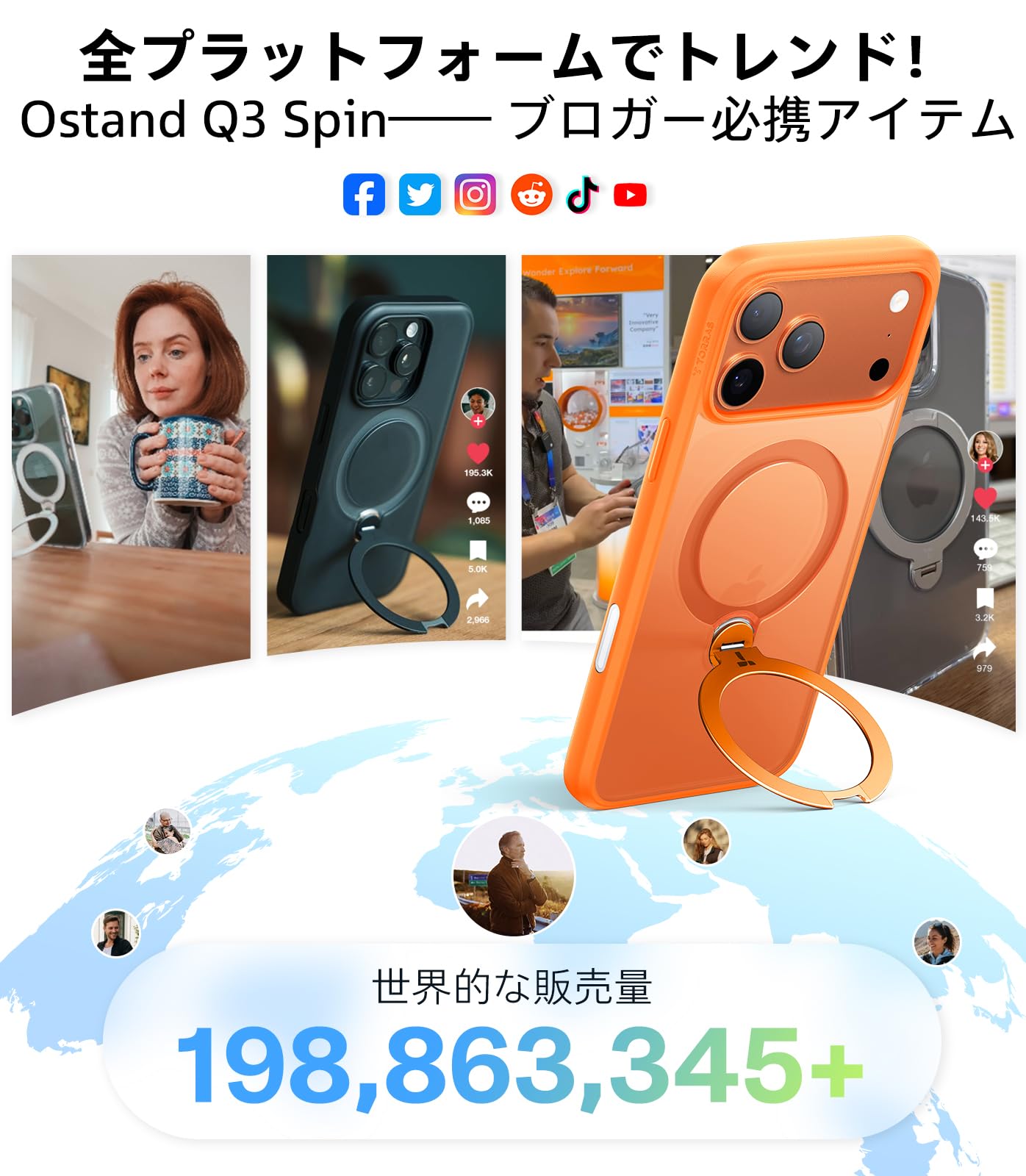 * 【多機能一体設計|瞬時に両手を自由に!】TORRAS Ostand Q3 Spin !スマホケースの常識を打ち破る核心リング!「収納-展開」を一瞬で切り替え:非使用時は背面と完全一体化し、滑らかな触感で掌に馴染む;展開すれば 3 大実用機能を発揮 ——360° 定点回転スタンド(縦横両対応)、脱落防止リング(握持安定)、MagSafe 強磁モジュール(アクセサリー瞬間接続)。機能性と洗練さを両立し、スタンドケースの新基準を定義!
