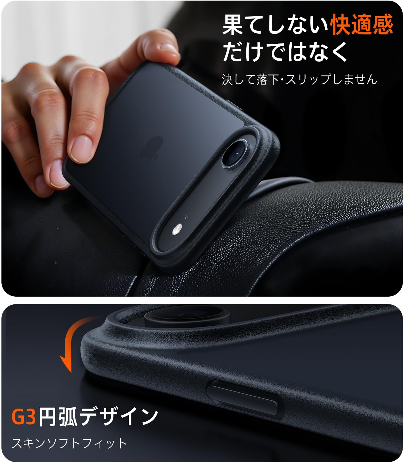 * 【防滑と快適さの完成形、7年の進化】NaPPaレザー調の微細なテクスチャーとラバー塗装を組み合わせ、手に自然に馴染む防滑性を実現。サラサラで滑らか、高級マウスのような上質な手触り。7年間の改良の末に辿り着いた、滑りにくさと心地よさの究極バランスです。手に握った瞬間から安心感と満足感が広がり、長時間の操作や持ち歩きでも疲れにくく、滑り落ちの不安から解放されます。(対応機種:For いPhone17Airケース)