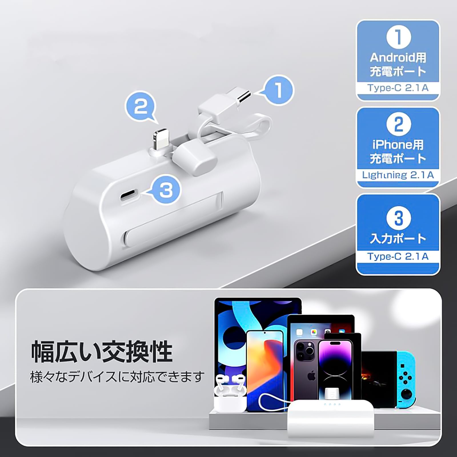 モバイルバッテリー 軽量 小型 6000mAh iPhone/Android用 2台同時充電 ケーブル内蔵 持ち運び便利 コードレス 直接充電アンドロイド LED残量表示 持ち運び便利 隠しスタンド搭載 スマホ充電 全機種対応 携帯充電 旅行·出張·キャンプ·緊急用 PSE認証済 灯显(ピンク, USB-C対応)