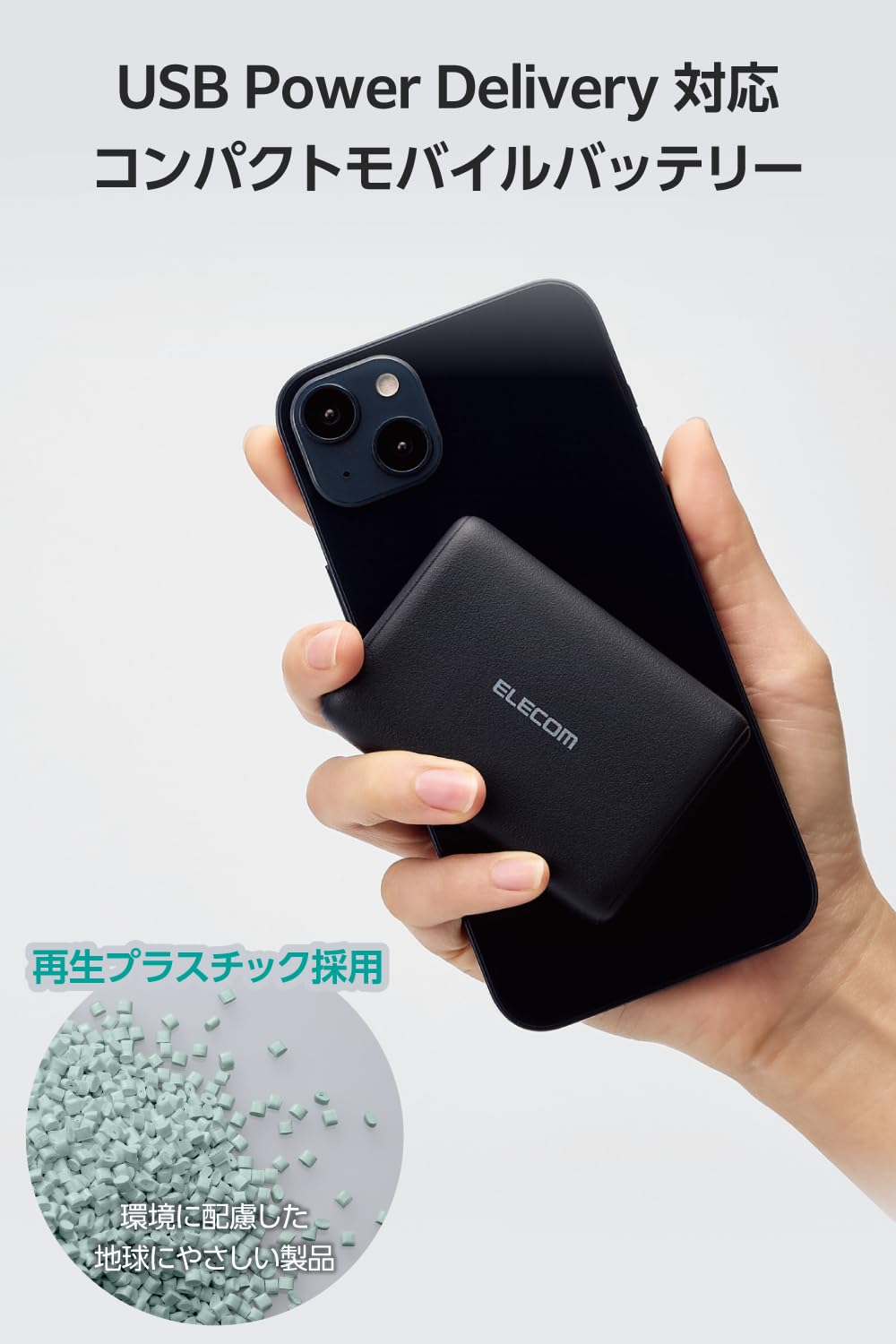 エレコム モバイルバッテリー 20W USB PD対応 大容量 小型 軽量 2ポート USB-C USB-A ケーブル別売り 2台同時充電 PSE技術基準適合 [ iPhone 16 15 / iPad 10 など各種対応] ブラック EC-C13LBK