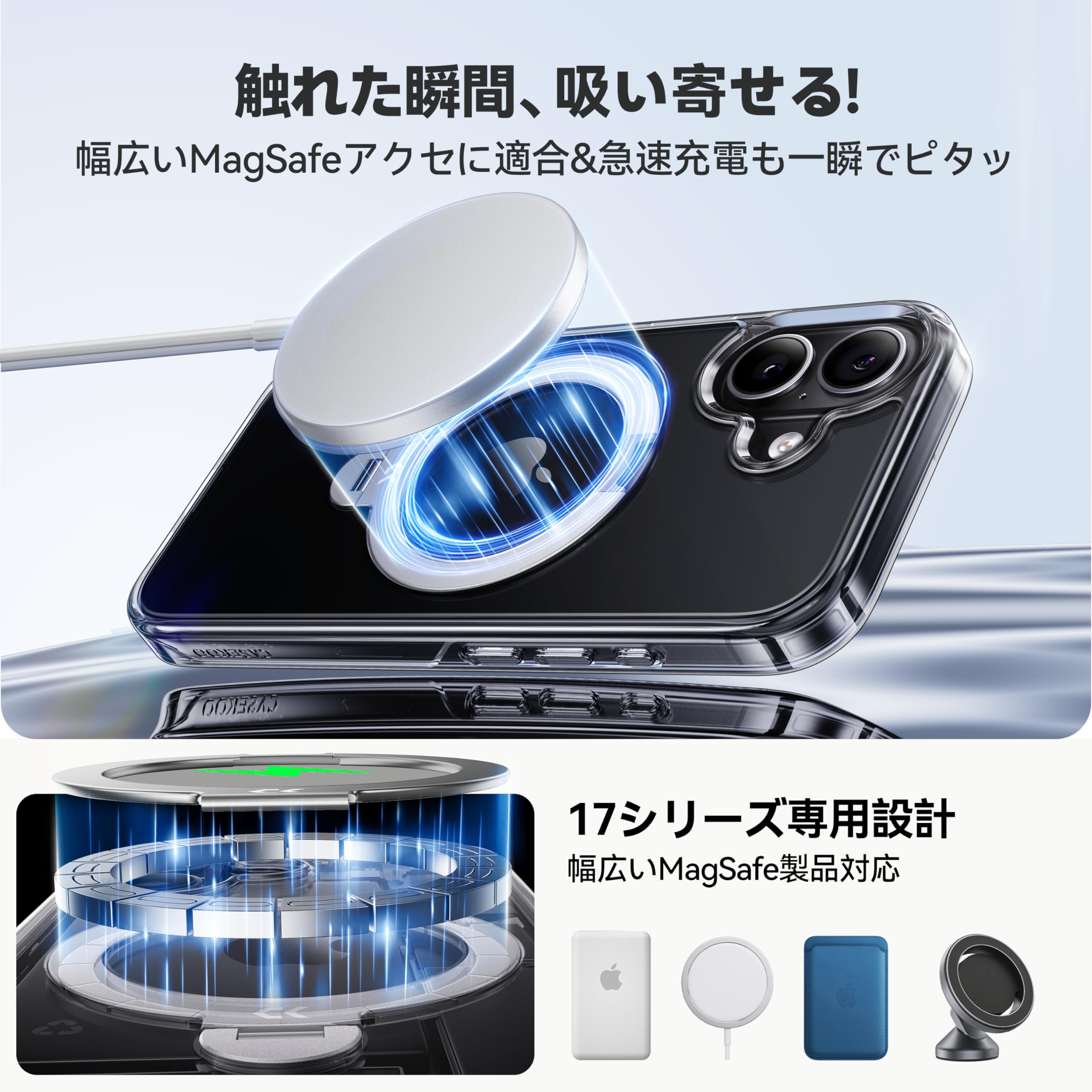 * 【MagSafe対応を極めた、業界最強18N磁力】新型iPhone 17シリーズに合わせた専用設計で、装着した瞬間からモバイルバッテリー・ウォレットなどのMagSafe対応製品がぴたり。位置合わせ不要で、誰でもすぐに使いこなせる。n58グレード磁石を特許取得済みのHalbach配列で配置し、18Nの業界最高レベルの吸着力を実現。車載ホルダーでもズレず、バイクや自転車ナビの激しい振動にも安心対応。急ブレーキにも強く、ナビも安定して視認可能。最大25Wの高速ワイヤレス充電に対応し、冷蔵庫やロッカーに貼ってレシピ確認や動画視聴も快適。高級感ある仕上がりで、実用品としての満足度も高く、贈り物にも選ばれている逸品。※鉄含有率や設置面の素材によって磁力が弱まる場合があります。対応機種:iphone17 ケース MagSefe対応