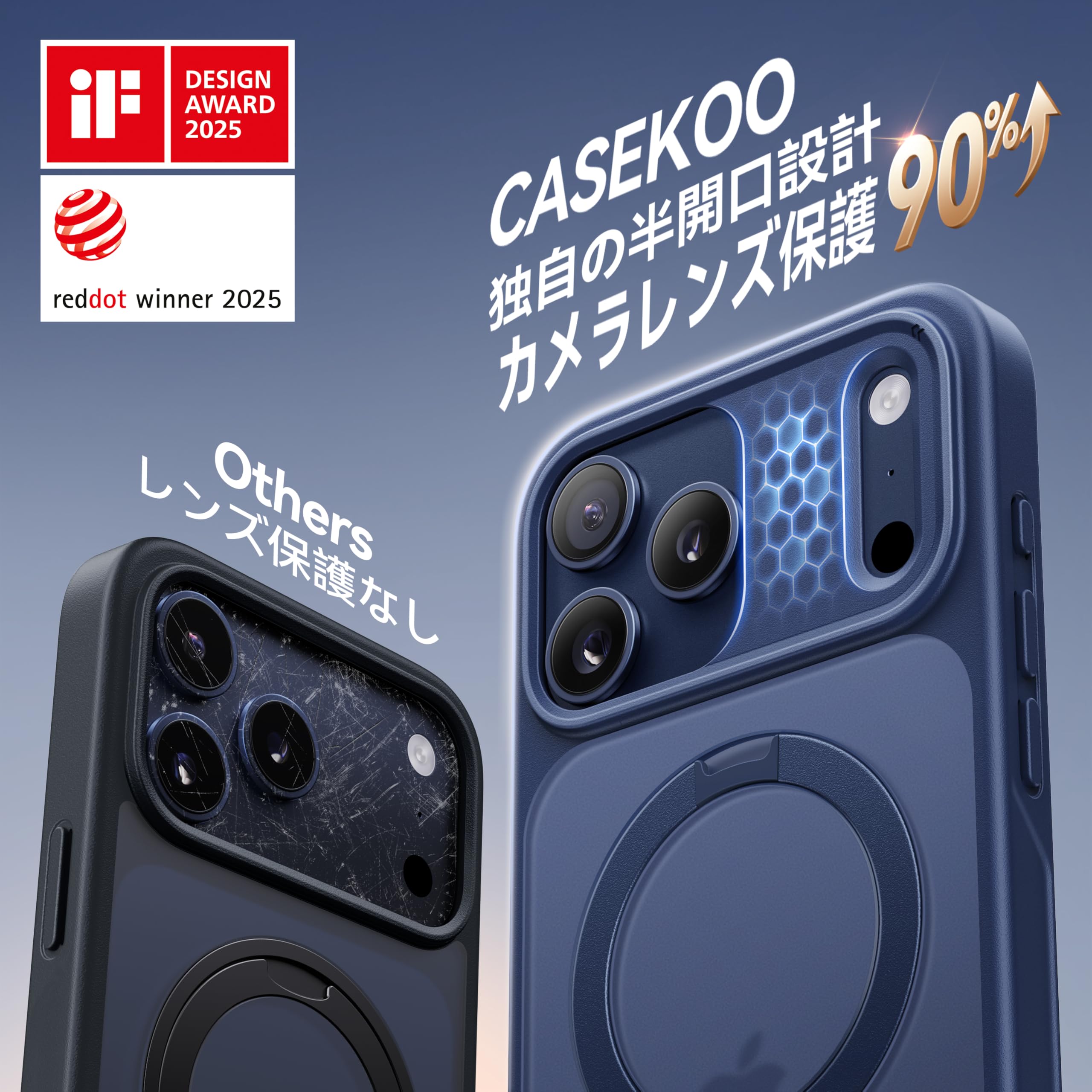 【2025最高傑作&定点360度回転】CASEKOO iPhone 17 Pro Max 用 ケース MagSafe対応 米軍MIL規格 360°全方向耐衝撃 【横縦両立・角度自由調整】最大25W急速充電対応 指紋防止/マット仕上げ/黄変防止/半透明 ラップホール付き ワイヤレス充電対応 いphone17promax 用ケース 6.9インチ「MagicStand Pro」(ブルー)