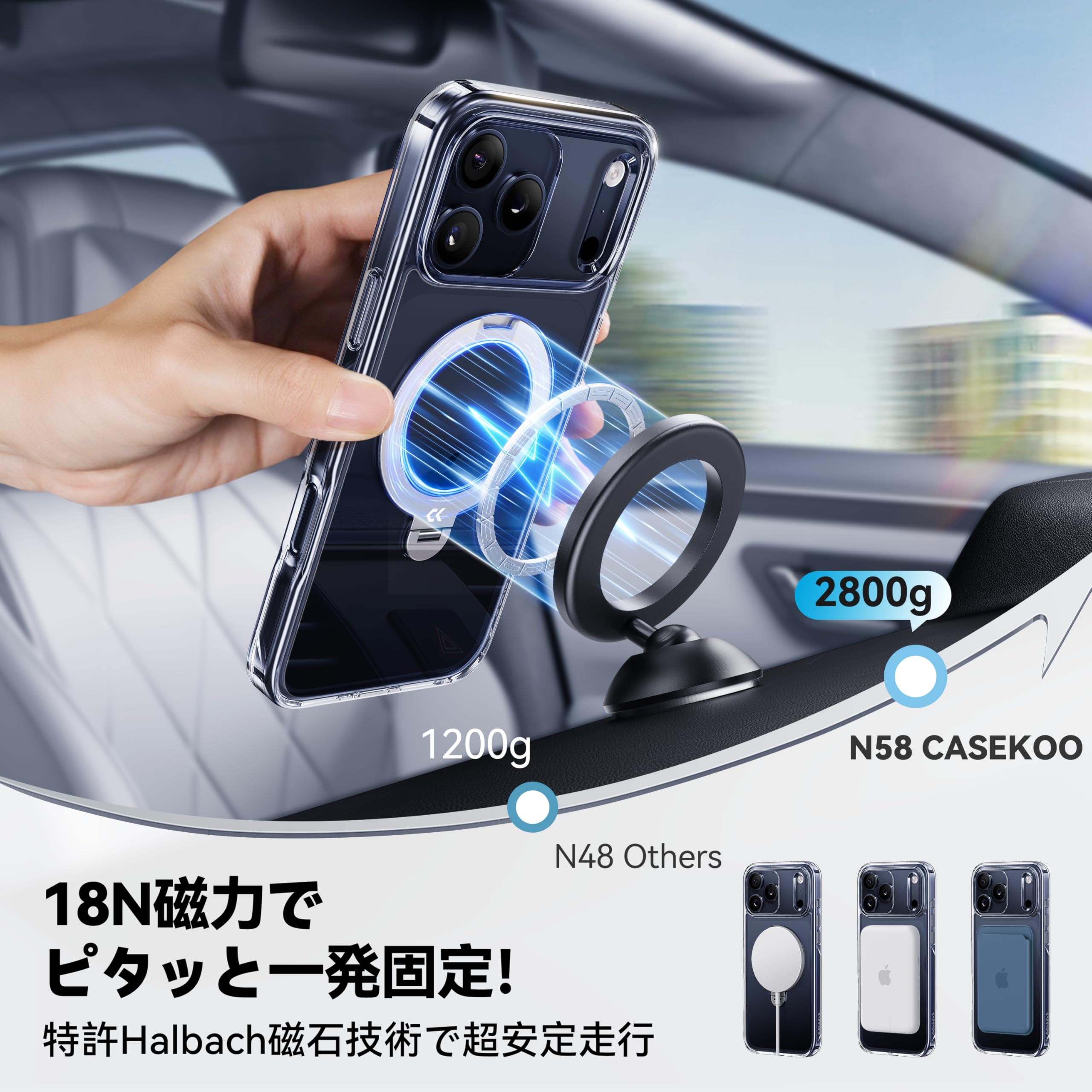 * 【MagSafe対応を極めた、業界最強18N磁力】新型iPhone 17シリーズに合わせた専用設計で、装着した瞬間からモバイルバッテリー・ウォレットなどのMagSafe対応製品がぴたり。位置合わせ不要で、誰でもすぐに使いこなせる。n58グレード磁石を特許取得済みのHalbach配列で配置し、18Nの業界最高レベルの吸着力を実現。車載ホルダーでもズレず、バイクや自転車ナビの激しい振動にも安心対応。急ブレーキにも強く、ナビも安定して視認可能。最大25Wの高速ワイヤレス充電に対応し、冷蔵庫やロッカーに貼ってレシピ確認や動画視聴も快適。高級感ある仕上がりで、実用品としての満足度も高く、贈り物にも選ばれている逸品。※鉄含有率や設置面の素材によって磁力が弱まる場合があります。対応機種:いphone17promax ケース MagSafe対応