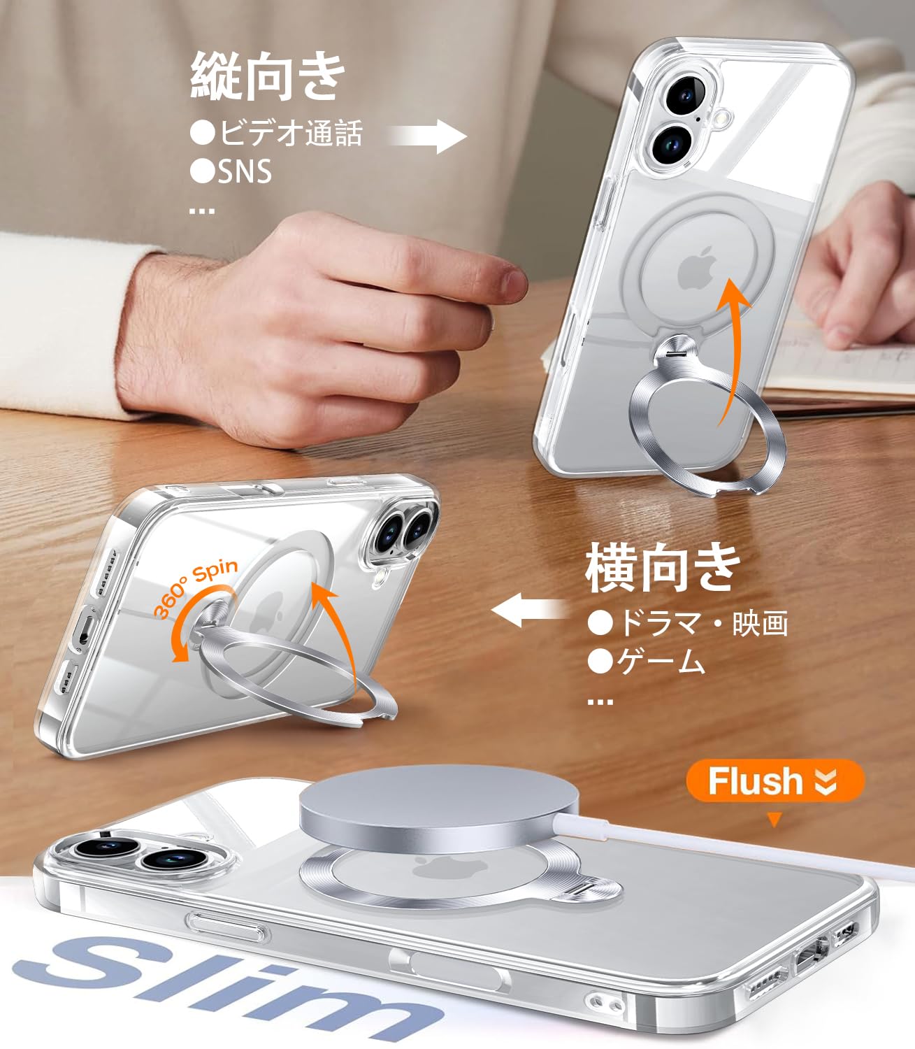 【全身極上クリア・360°回転CD スタンド】ZapNet iPhone 17 用 ケース Magsafe 対応 [定点スタンド・超絶安定性][本体を再現・極透明]ストラップホール付き マグセーフ ワイヤレス充電対応 黄変防止 米軍MIL規格取得・耐衝撃 アイホン17 ケース マホケース17 人気 6.3インチ(クリア)