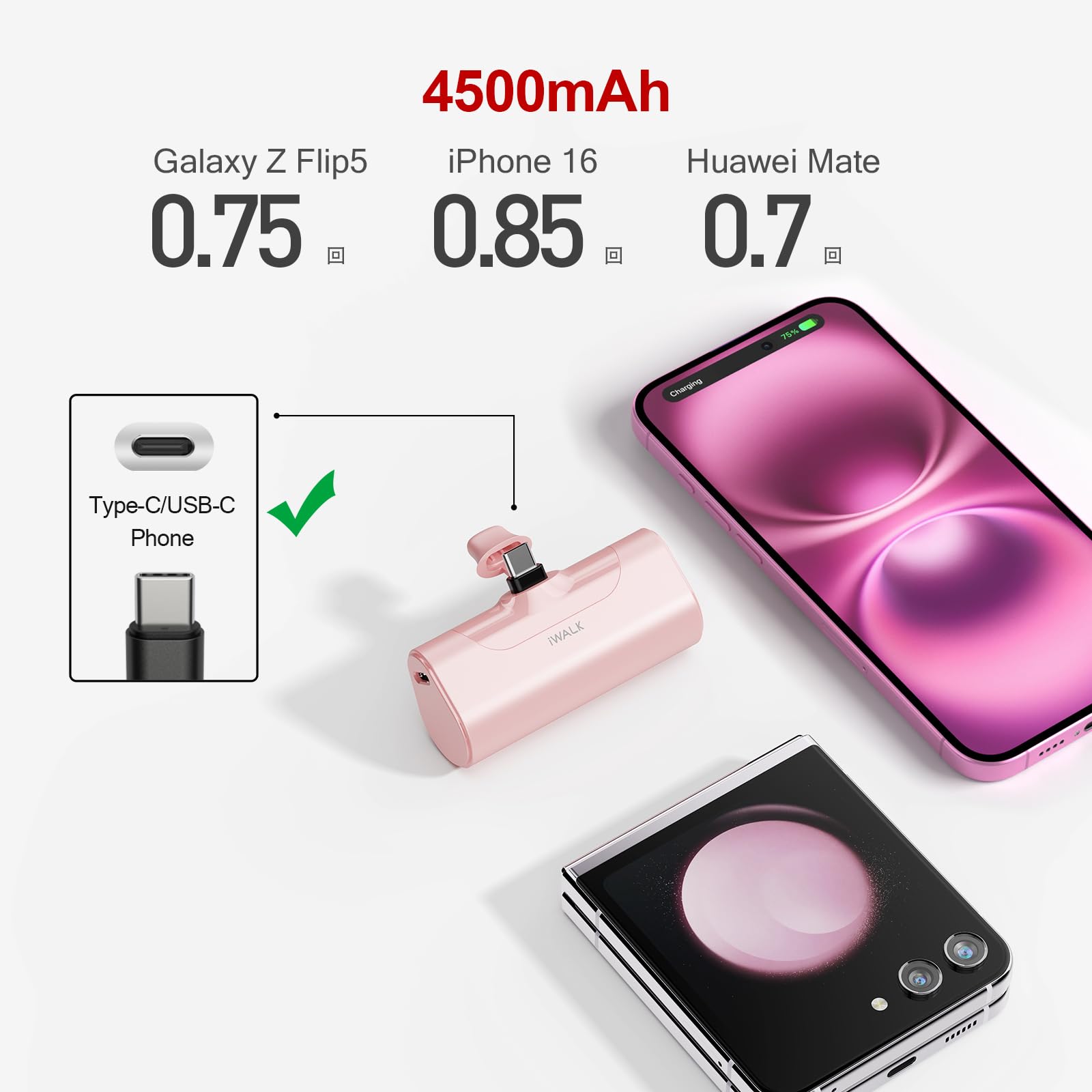 iWALK 超小型 モバイルバッテリー タイプc 4500mAh USB-C コネクター内蔵 直接充電 コードレス コンパクト かわいい もばじゅう 小型 タイプc 軽量 小型 モバイル充電器 「iPhone 17/16/15シリーズ対応」Max Samsung Galaxy S24 S23 ipad AirPods Android対応 PSE認証済 ピンク