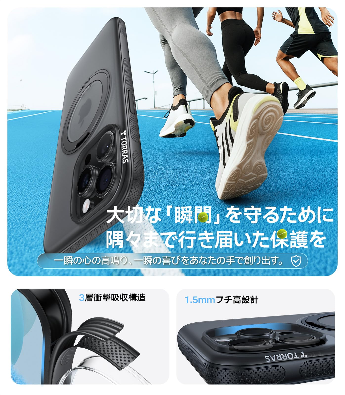 * 【エアバッグ搭載・強耐衝撃】 内側には縞状RUNWAYエアバッグが搭載、優れた保護性を発揮!ランウェイをイメージしたエアクッションで iPhone 15 Proを包み込みます。1.5mmの高さのベゼルが、スケートショットや山道での転倒時に画面とレンズをコンクリートの衝撃から保護し、4 つのコーナーの強化部分が専門的に衝撃を吸収します。ジムの床から砂利道まで 4000 回以上の落下テストをクリアし、高品質の保護素材により耐久性が実現されています。(iPhone 15 Pro専用)