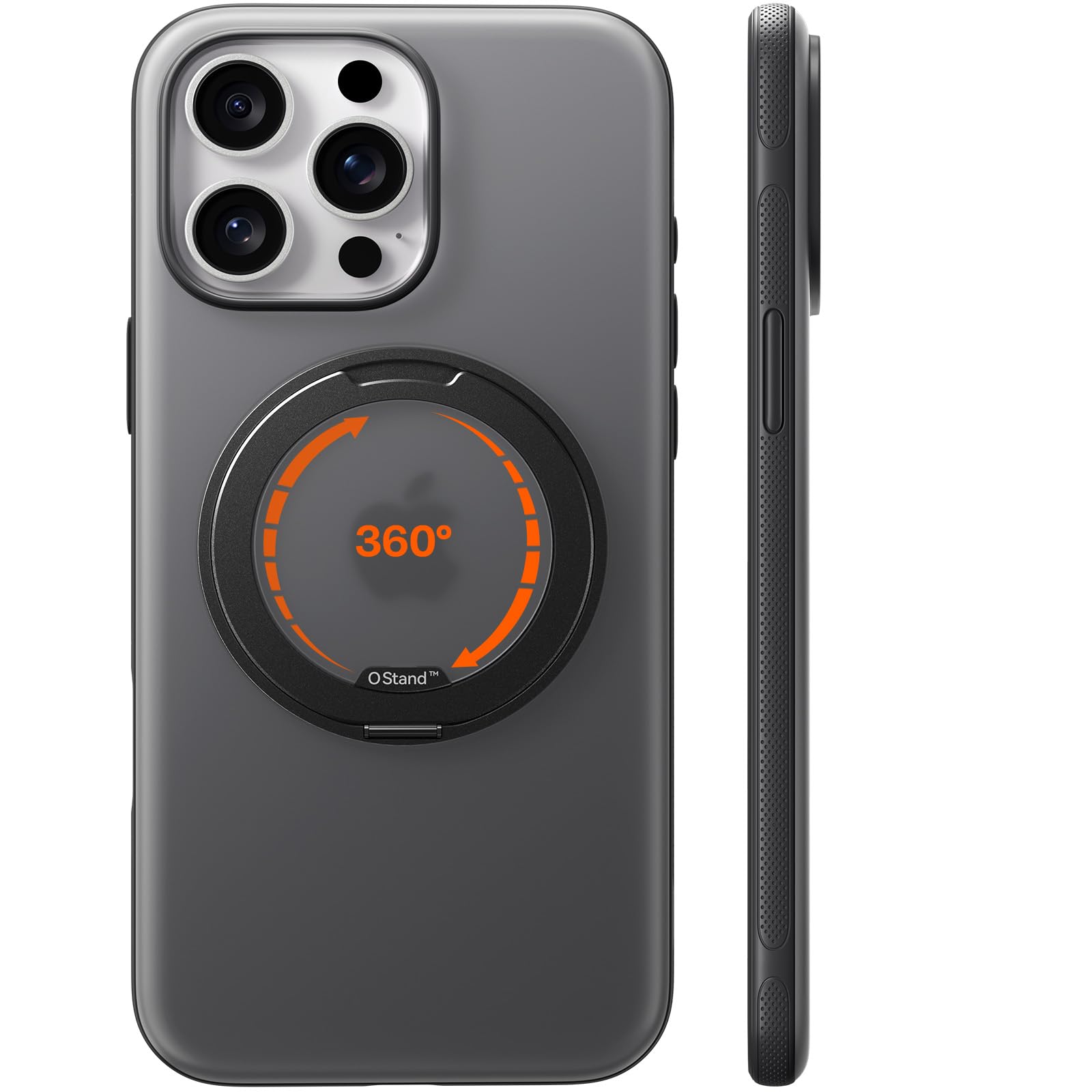 TORRAS iPhone 15 Pro 用 ケース【チクチク・多機能360度回転スタンド】 縦横両対応 マグネット搭載 MagSafe対応 米軍規格耐衝撃 リング 指紋防止 黄変防止 マグセーフ対応 レンズ保護 手持ち撮影 安定性 三眼 6.1インチ「Ostand R Fitness」ブラック