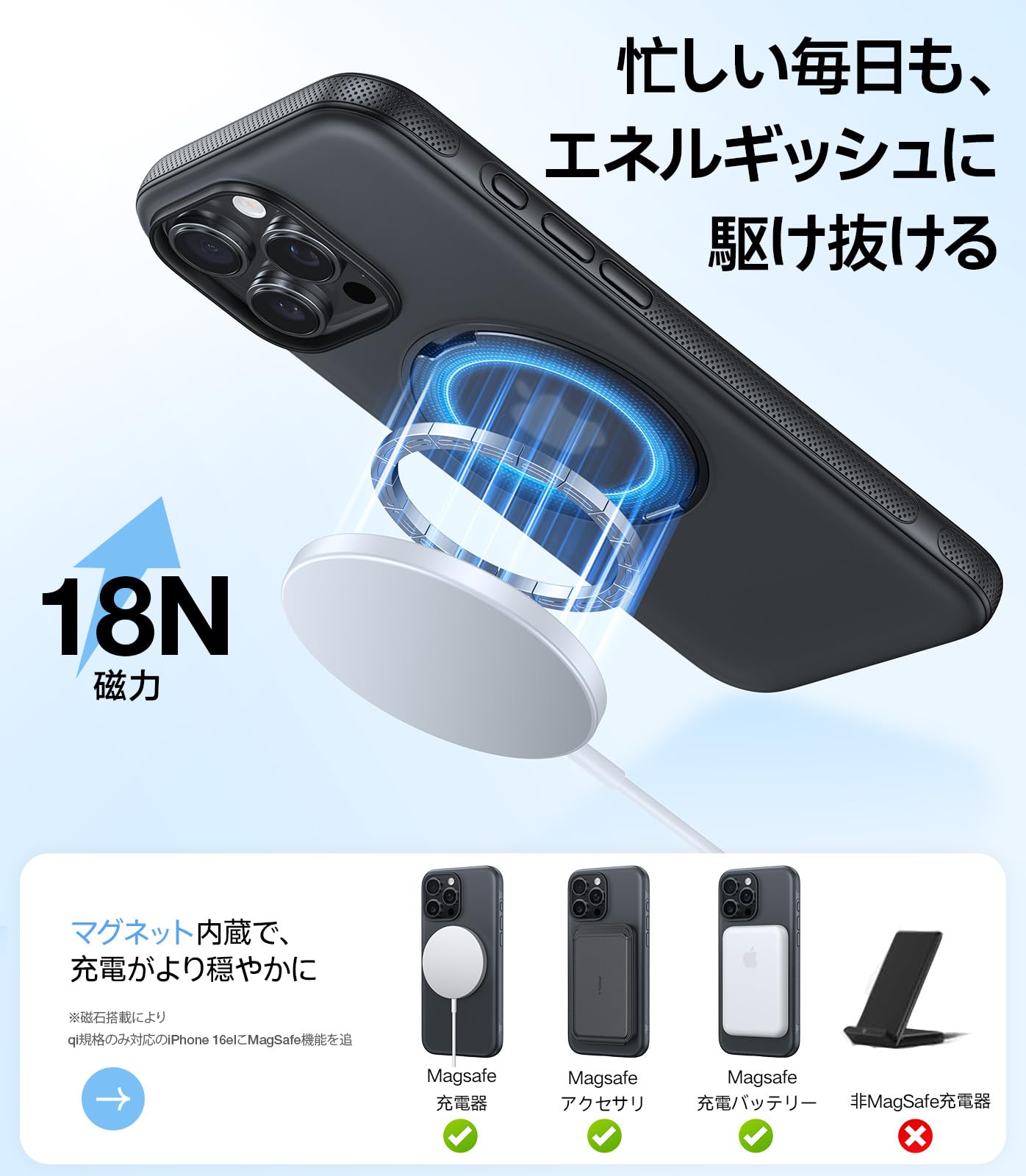 * 【Magsafe対応の超能力】さまざまな磁力アクセサリーにも対応しています。独自のハルバッハアレイと高度な N52SHネオジム超強力磁石を採用したiPhone 15 Pro用ケースは、Magsafe系の充電器、モバイルバッテリーなどにしっかりと固定されます。低電力の際に、通勤ラッシュの満員電車でも、Ostand R Fitnessなら充電しながら片手で動画を観たりする安心感をもたらします。慌ただしい通勤路にちょっとした余裕を届けてくれます。運転する場合、砂利道を走ってもガタつかずに安定します。強力マグネットが「落とす心配」を解消し、毎日の移動時間を快適に変える新習慣。