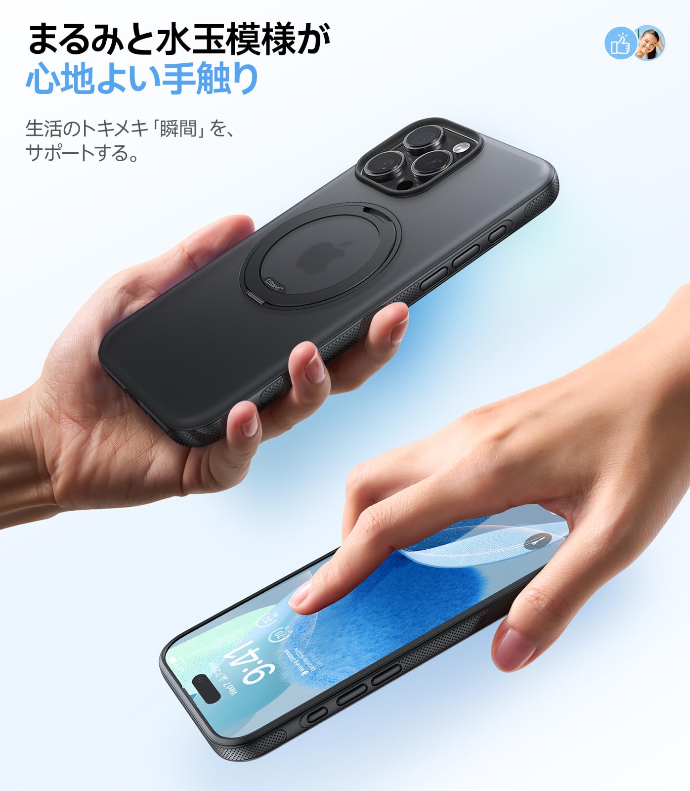 * 【マットな高級感】触るだけで驚きの滑らかさを感じられます。一般的な透明ケースが持つべたつき感とは一線を画す、肌に優しいなめらかな質感で、猛暑の夏でも心地よく使えます。涼しく爽やかな触感で、快適な使用体験を提供します。さらに、半透明のデザインは、上品で高級感あふれる雰囲気を演出します。また、ケースのフレーム部分は水玉模様にデザインされ、防汚コーティングが施されています。美しさだけでなく、汚れに強く、長期間にわたって清潔で美しい状態を保つことができます。これぞ、機能性とデザイン性を兼ね備えた理想的なスマホケースです。