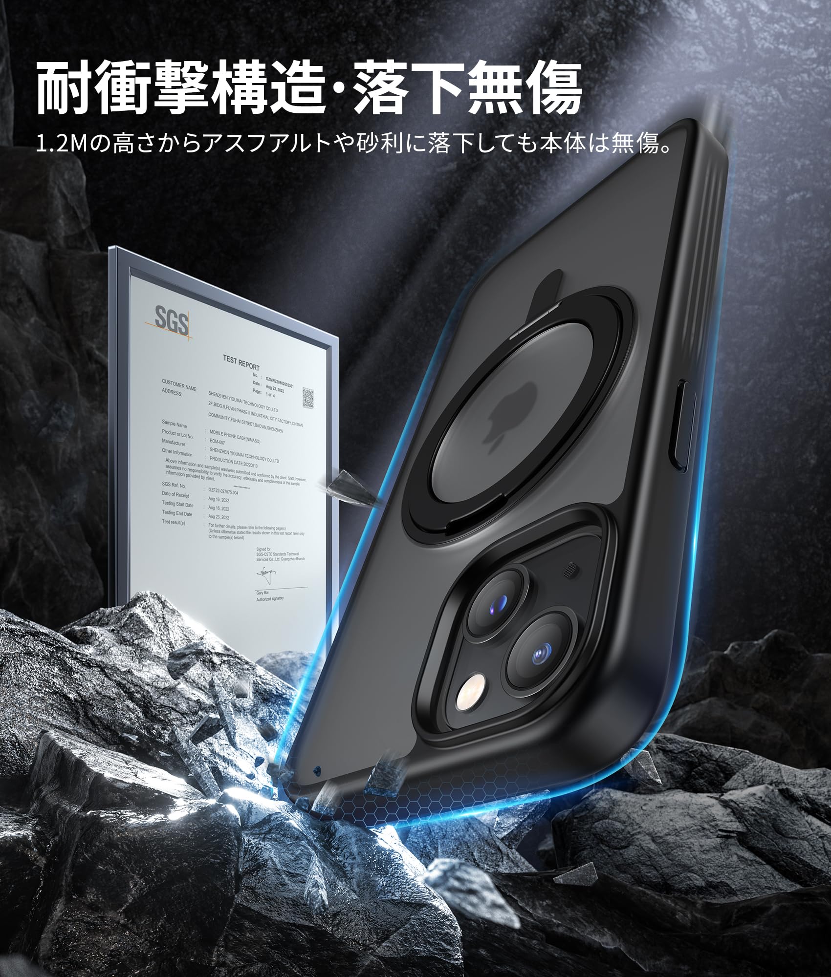 NIMASO iPhone 13/14 用 ケース 縦横両対応 360°回転スタンドケース MagSafe対応 携帯スマホケース リングマグネット搭載 カバー ワイヤレス充電対応 iPhone 13/14 用 磁吸強化 マット感 防指紋 米軍MIL規格 耐衝撃性 アジャスタブルスタンド アイフォン13/14対応 (6.1インチ) ブラック(黒羽シリーズ)NSC24K1550