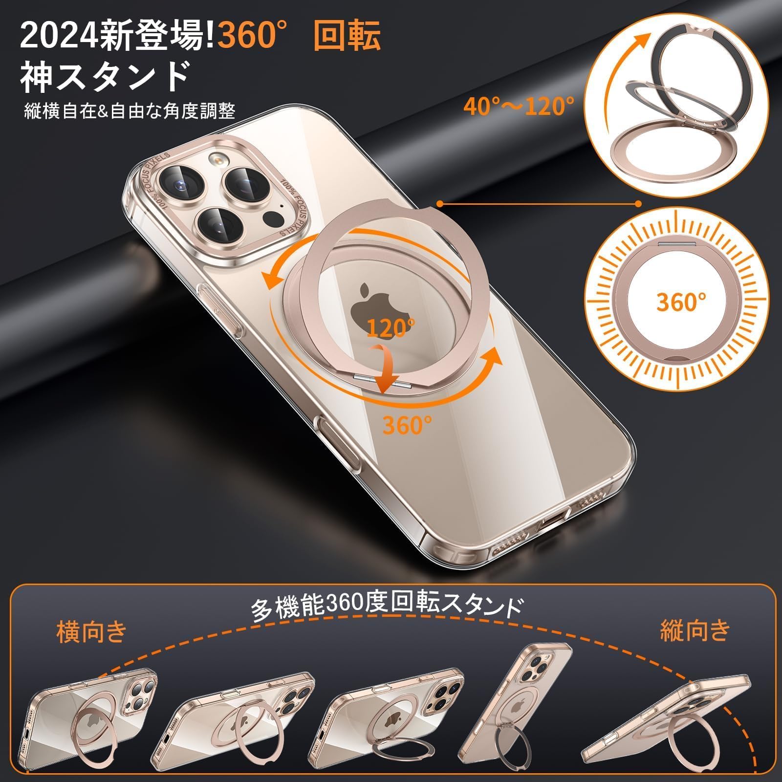 iPhone 16 Pro 用 ケース Magsafe対応 ワイヤレス充電 360°回転スタンド 縦横両対応 Gunwon スマホケース iphone16 Pro 用 米軍規格 耐衝撃 半透明 マット感 マグセーフ 防指紋 リング マグネット搭載 アイフォン16プロ 用 カバー「クリア・ゴールド」
