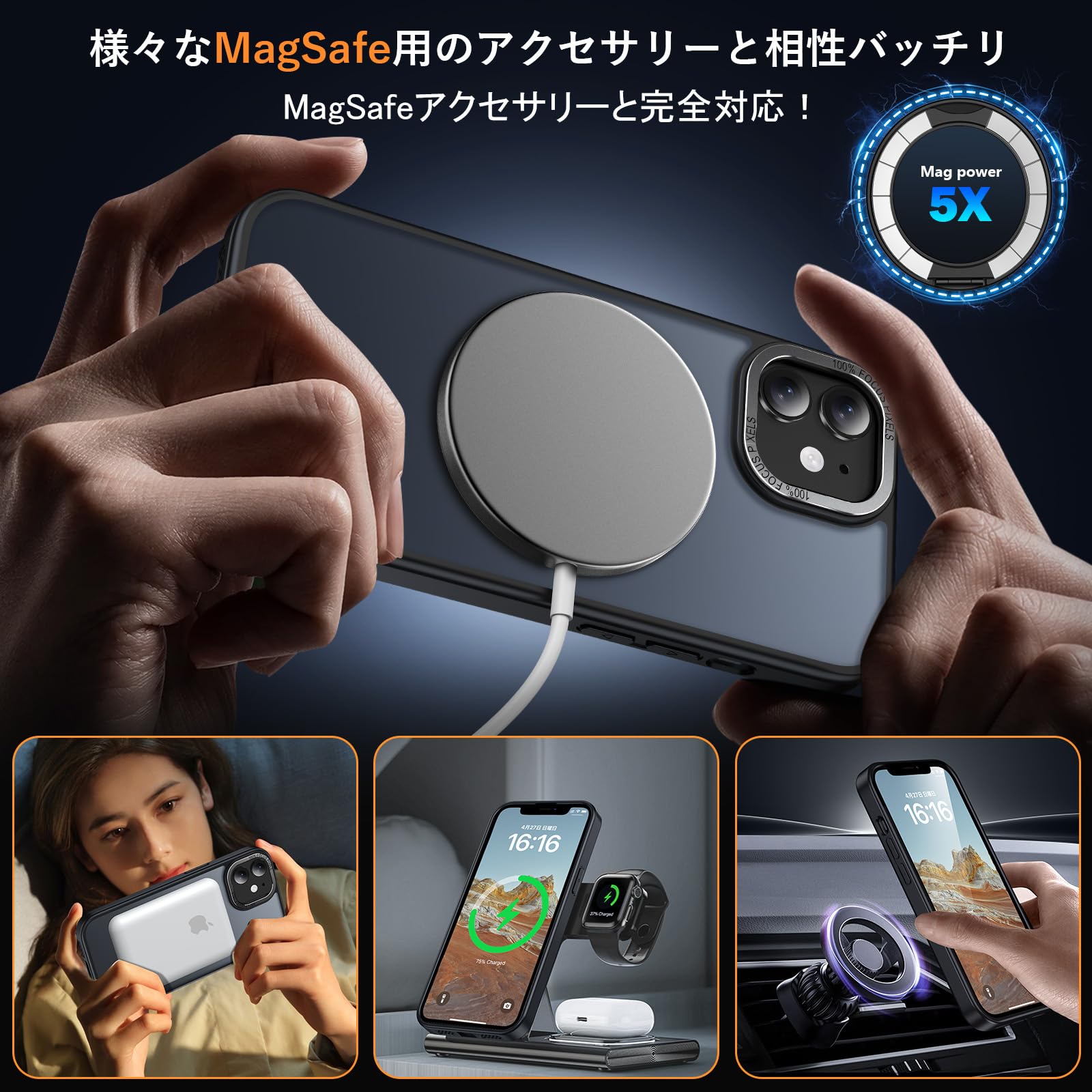 * 【MagSafe対応・磁力アップグレード】:強力なN52磁石を搭載しており、磁石吸着力は従来より10倍高め、ケースを装着したまま高速ワイヤレス充電が可能です、充電時の熱を周囲に発散して。Magsafe充電がかつてないほど簡単にできます!強い磁力により車運転中の激しい振動でもMagsafe車載ホルダーから外れることなく、市販のあらゆるMagsafeアクセサリーに簡単対応!いくら振っても落ちないので、充電しながらゲームをやっても問題なし!【 iphone 11 用 ケース アイフォン11 用 ケース アイホン11用ケース】