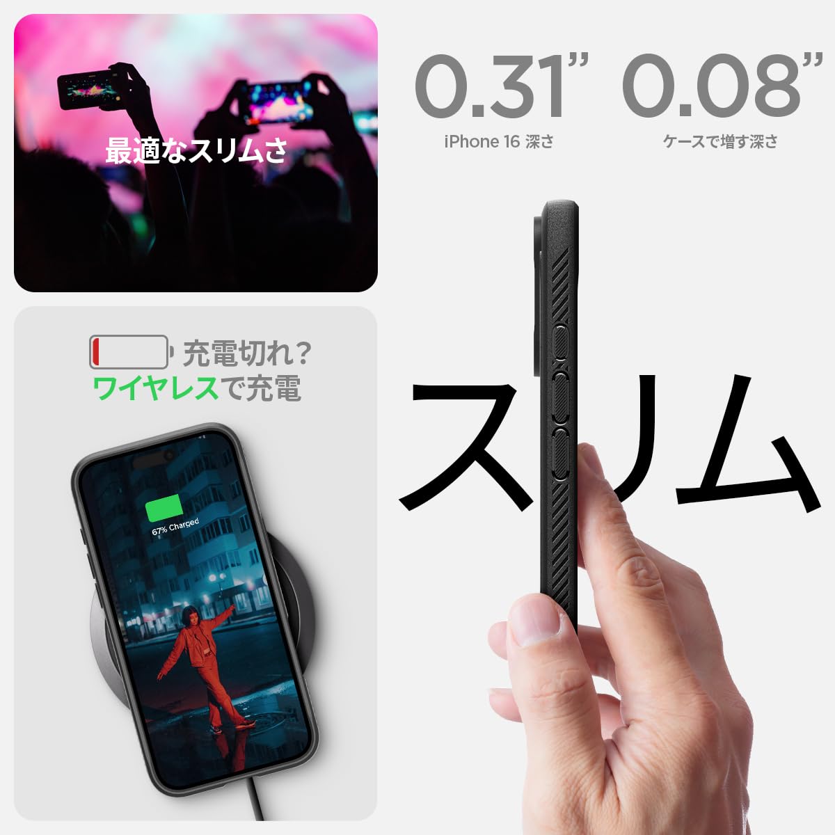 Spigen 【創業18年の技術力】iPhone 16 ケース MagSafe対応 耐衝撃TPU ソフト マット 米軍MIL規格 ラギッド・アーマー・マグフィット ACS08214 (マット・ブラック)