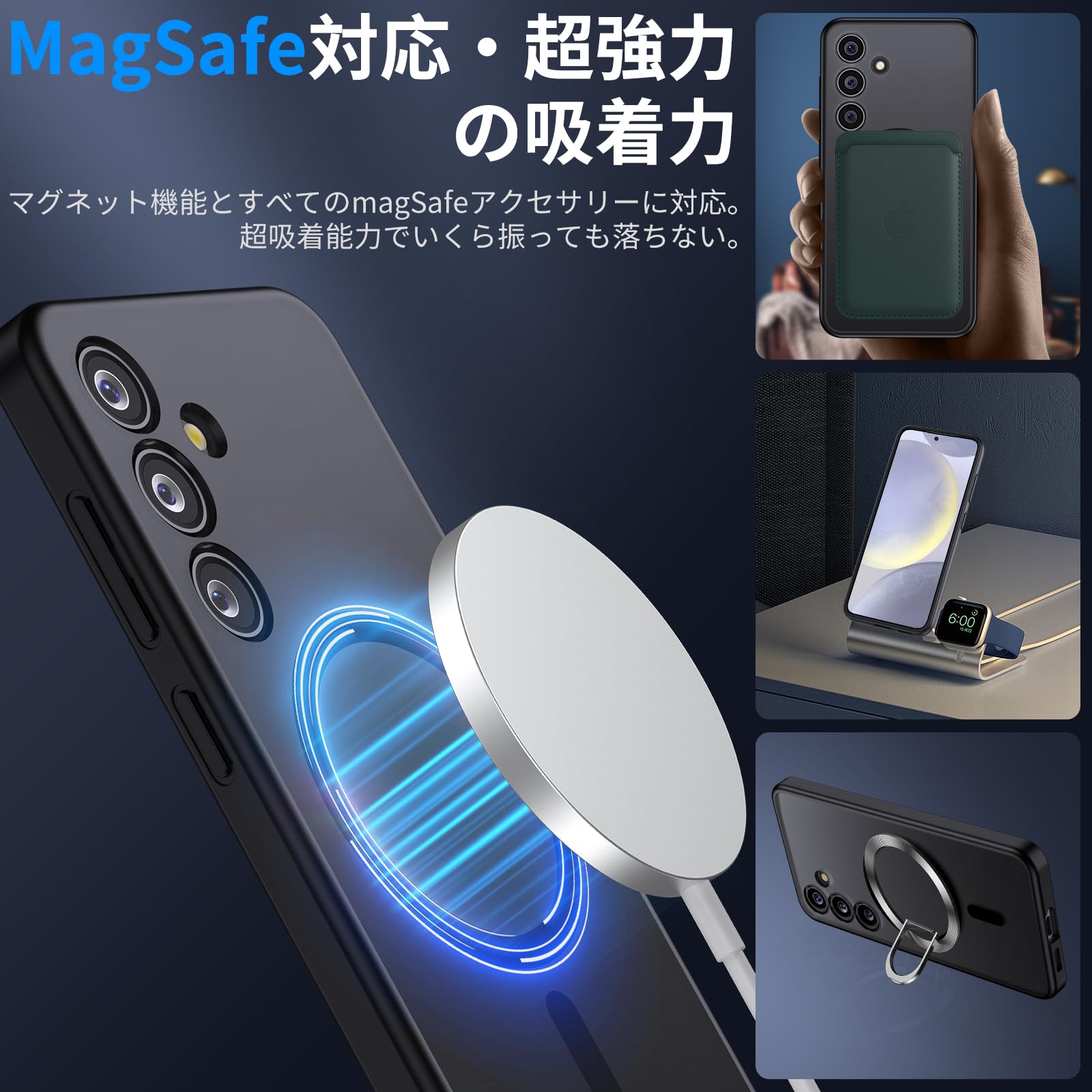 * 【MagSafe対応で一瞬高速充電!】galaxy s24 ケースのバックパネルに38個の強力なN52マグネットを搭載し、振っても安定感抜群の高速充電を実現!充電しながらゲームも楽しめ、ワイヤレス充電や各種MagSafe対応アクセサリーにもピッタリ対応しています。※予めご了承ください:磁力があるため、携帯本体付属のタッチペンが磁力干渉を起こして使えなくなる可能です。また、電子決済の反応も弱くなる可能です。