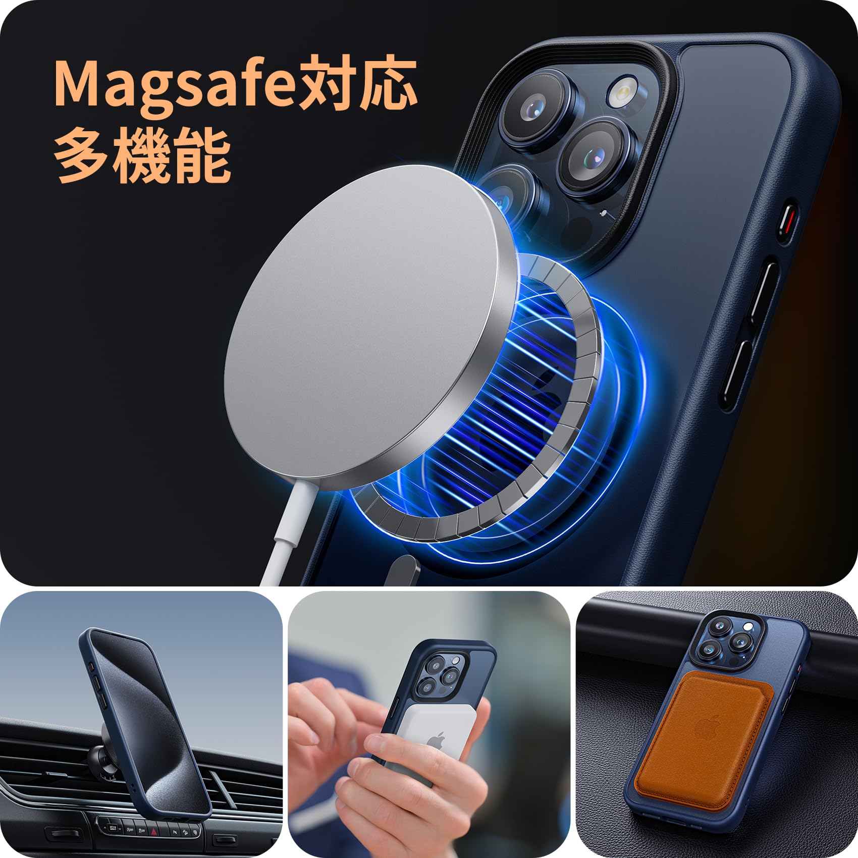 * 【MagSafe対応・強力な磁吸】スマホケース内部に38個の強力なN52マグネットを搭載しており、一瞬でピッタリと高速充電を実現!いくら振っても落ちないので、充電しながらゲームをやっても問題なし!また、ワイヤレス充電やモバイルバッテリー・車載ホルダー・スタンド・リングなど全てのMagSafeアクセサリーにもばっちり対応しています。