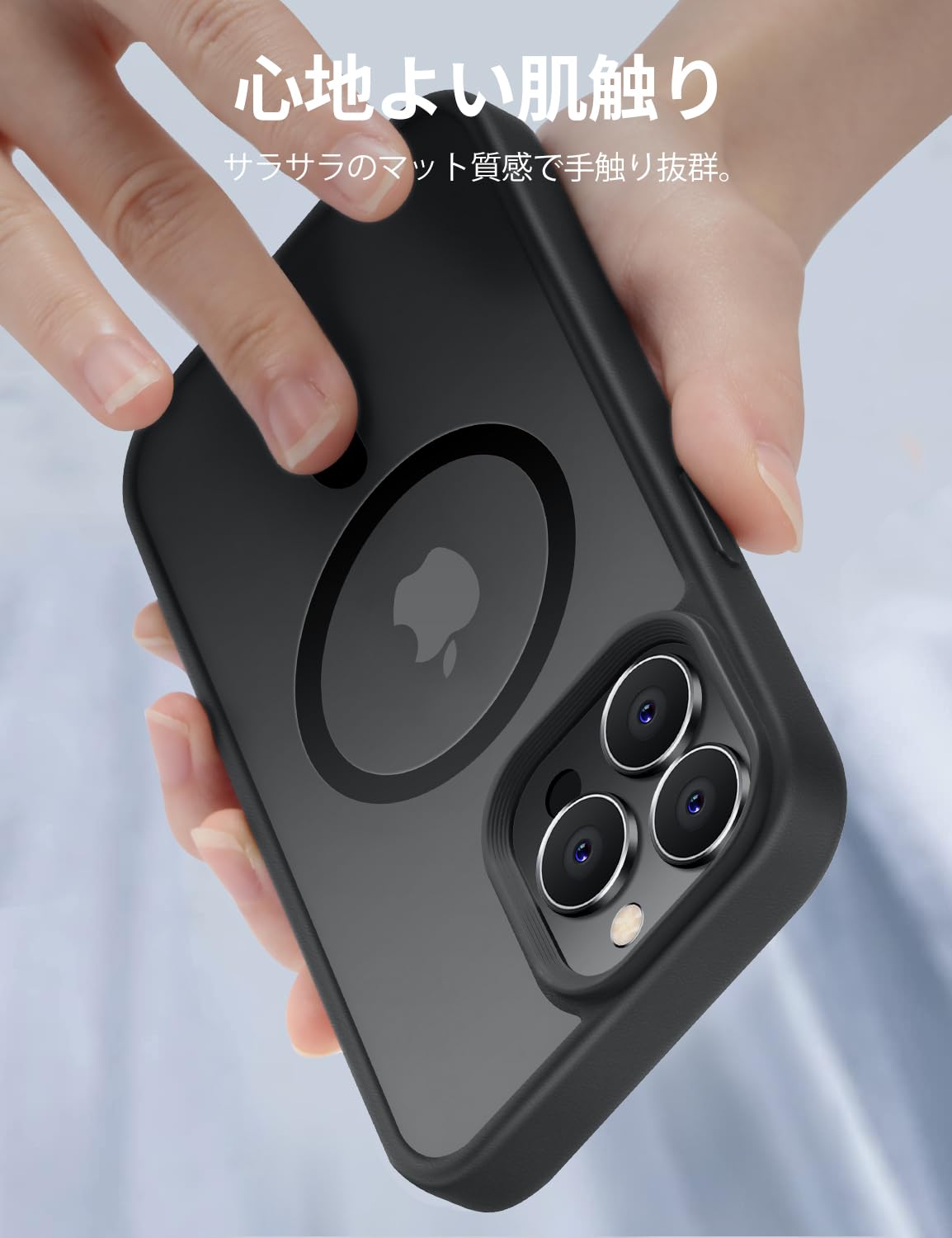 【米軍規格・MagSafe対応】Gtsoho iPhone15ProMax用 ケース 半透明 マグネット搭載 ワイヤレス充電 耐衝撃 耐久性 全面保護 黄ばみなし ストラップホール付き イフォン15 Pro Max用 カバー マグセーフ対応 ブラック