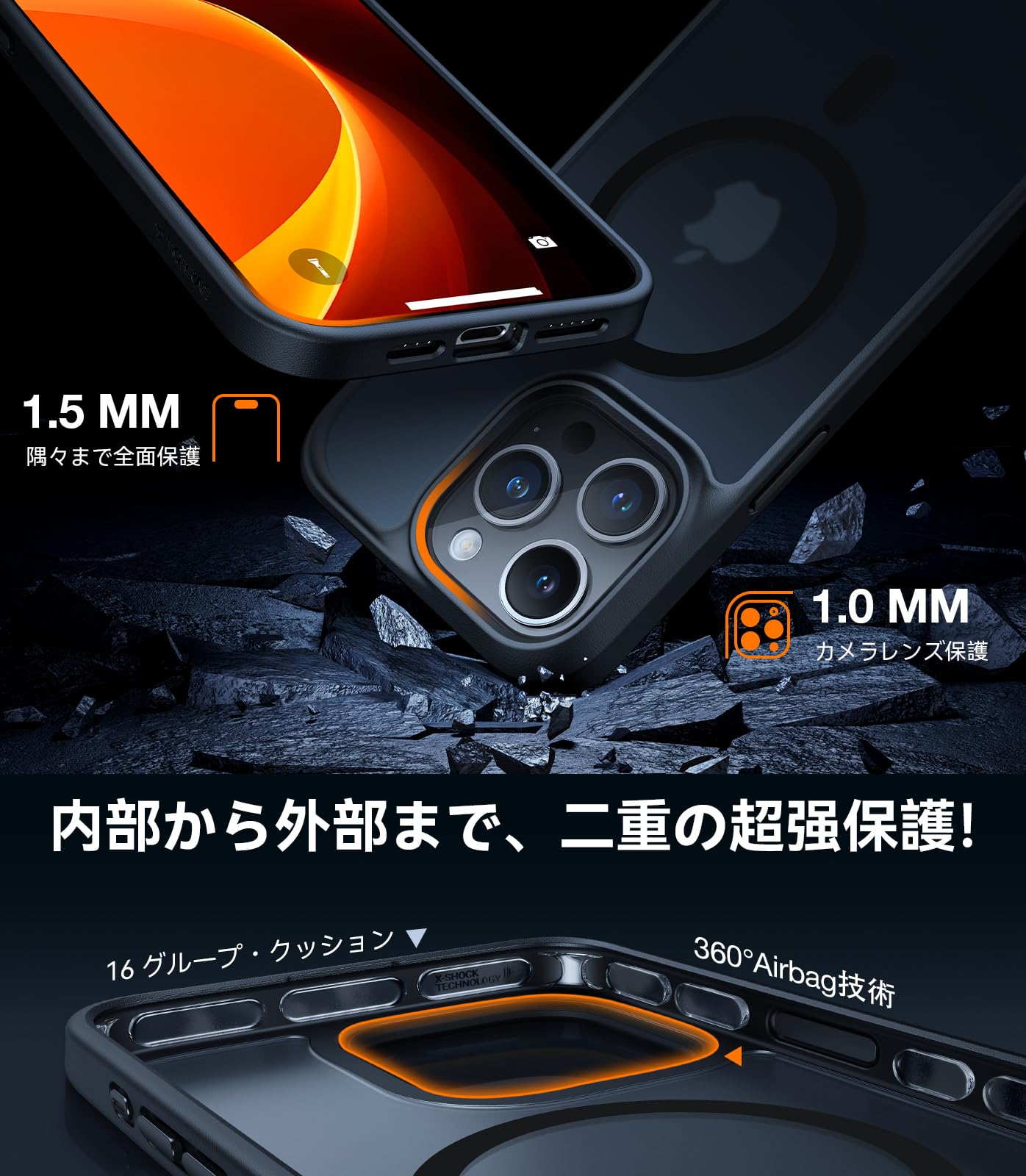 * 【米軍規格取得・究極の防御!】三大保護特許の結集によって、街での落下も、バッグからの転落も、全てのガード!どんな衝撃的な旅にもスマホを守り抜く保護力を誇り、頑強なバリアを築き上げた。iPhoneをいかなる衝撃からも守り通すために生まれた優れものです。さらに、米国防総省が制定した米軍MIL規格に完勝し、業界最高の耐衝撃性を誇ることを証明しています。