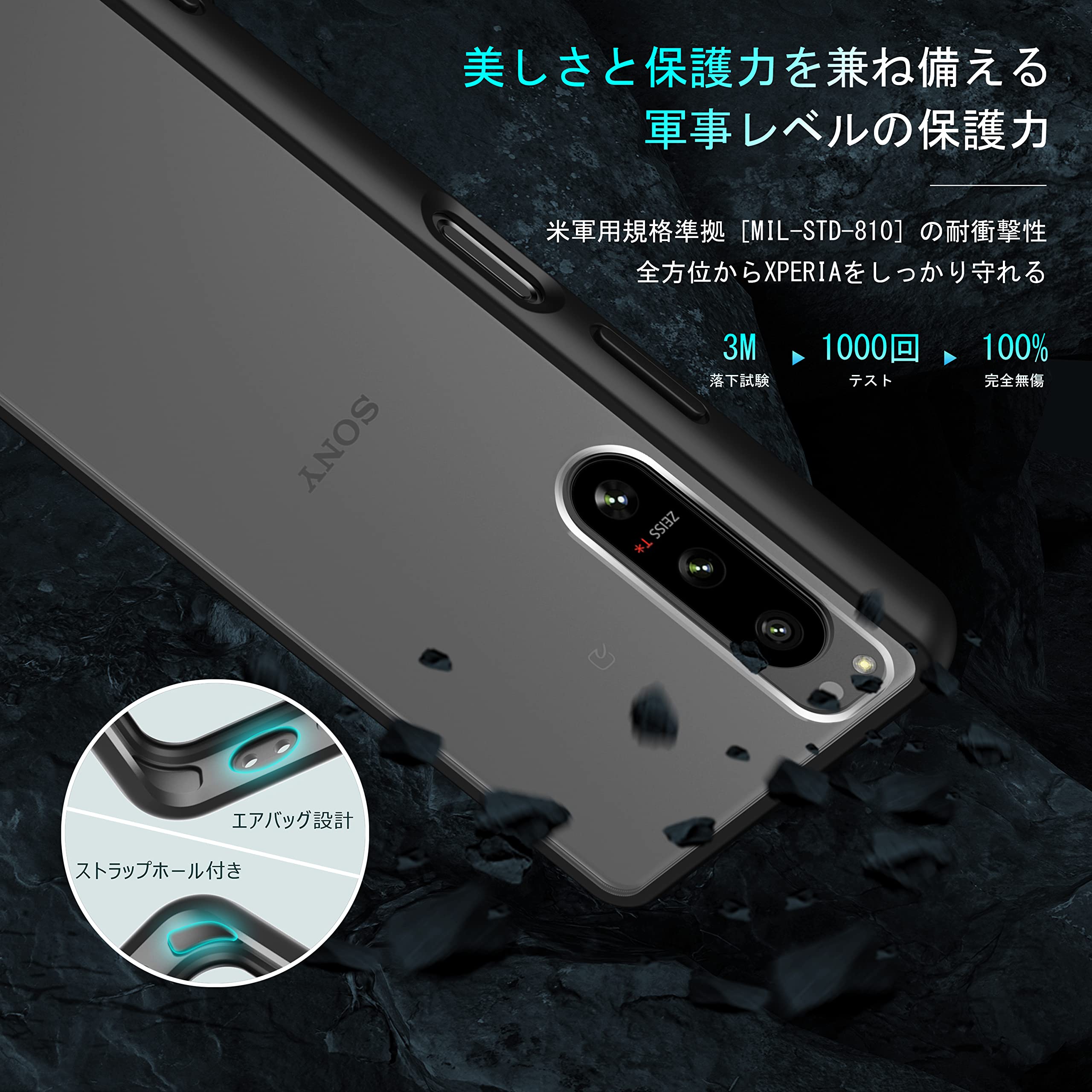 SONY Xperia 5 IV 用 ケース 半クリア SO-54C | SOG09 ケース 耐衝撃 マット感 米軍MIL規格取得 SGS認証 黄ばみなし レンズ保護 指紋防止 ストラップホール付き エクスペリア5 IV 用カバー Mist Series