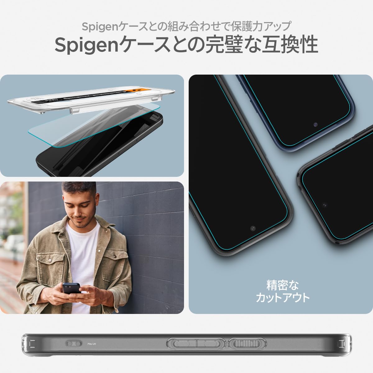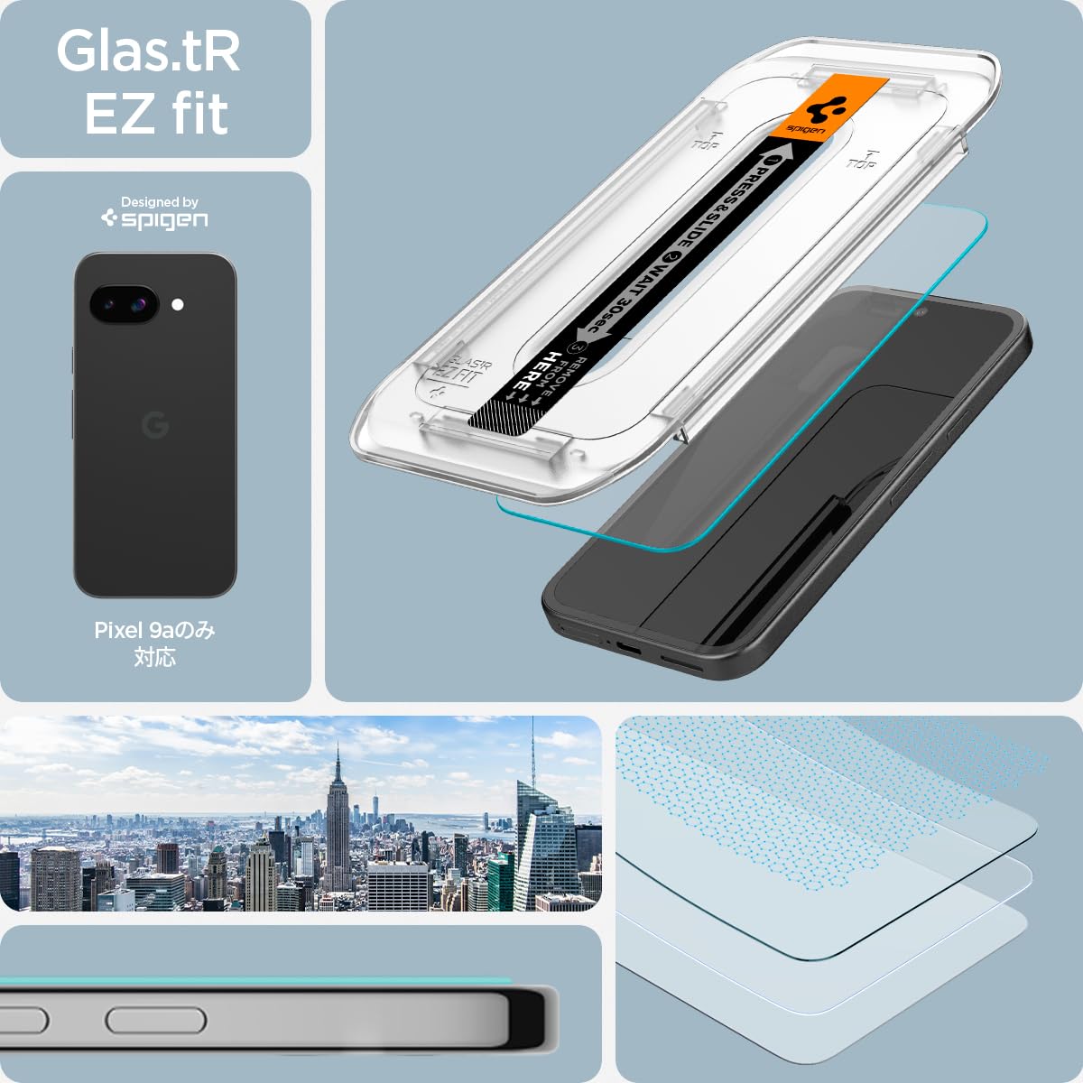 Spigen Google Pixel 9a ガラスフィルム 指紋認証対応 Pixel9a 保護フィルム 貼り付けキット付き 2枚入 ナノコーティング 飛散防止 EZ Fit AGL08938