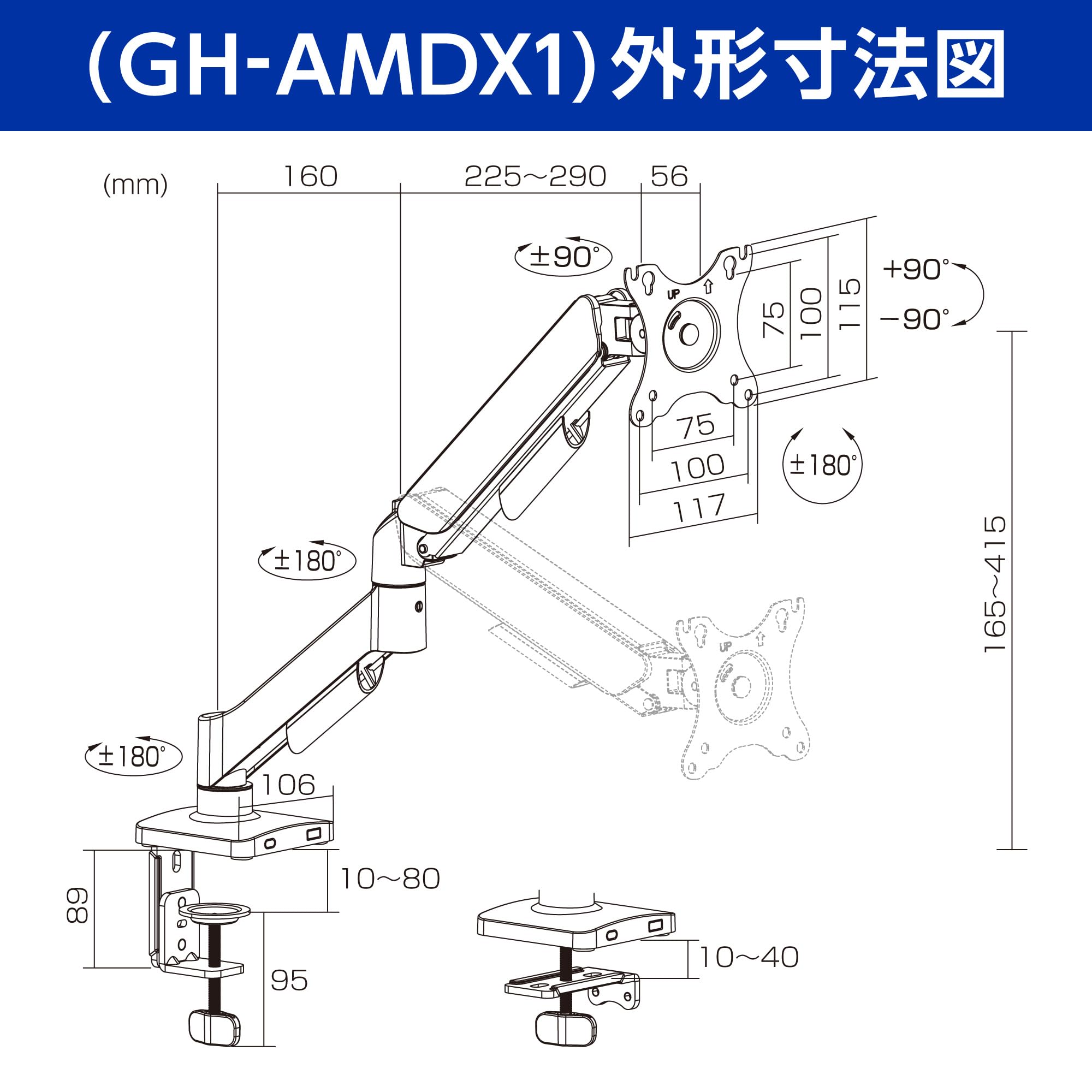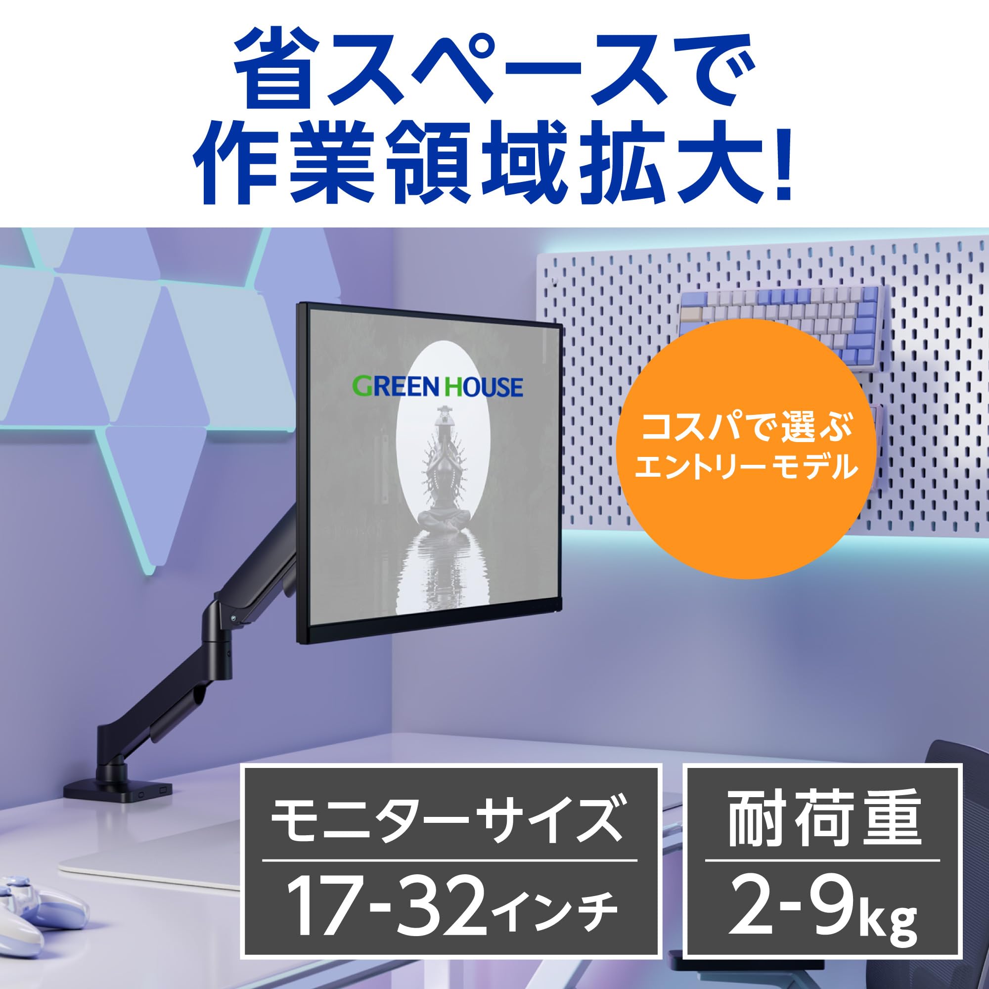 グリーンハウス モニターアーム 土台組立済みで設置簡単 シングル 17-32インチ対応 耐荷重2-9kg VESA規格 メカニカル式 4軸 3年保証 GH-AMDX1-WH