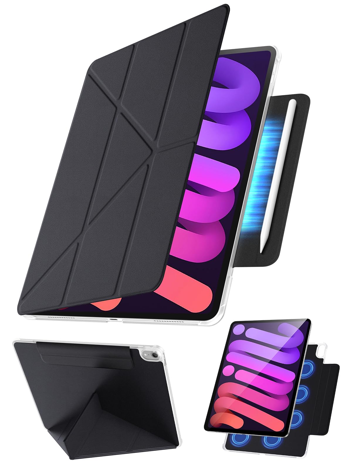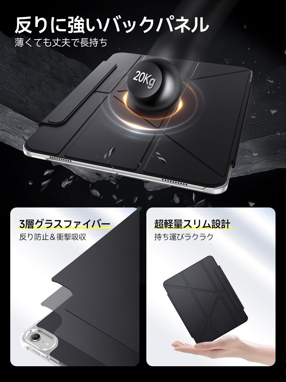 * 【磁気吸着&360°全面保護】 背面に強力マグネットを内蔵し、ケースが本体にしっかり密着。カバーの開閉で自動スリープ/ウェイクに対応。四隅強化に加え、360°全周を包み込むフルカバー設計で、落下衝撃、摩擦、埃や指紋からもしっかり守ります。