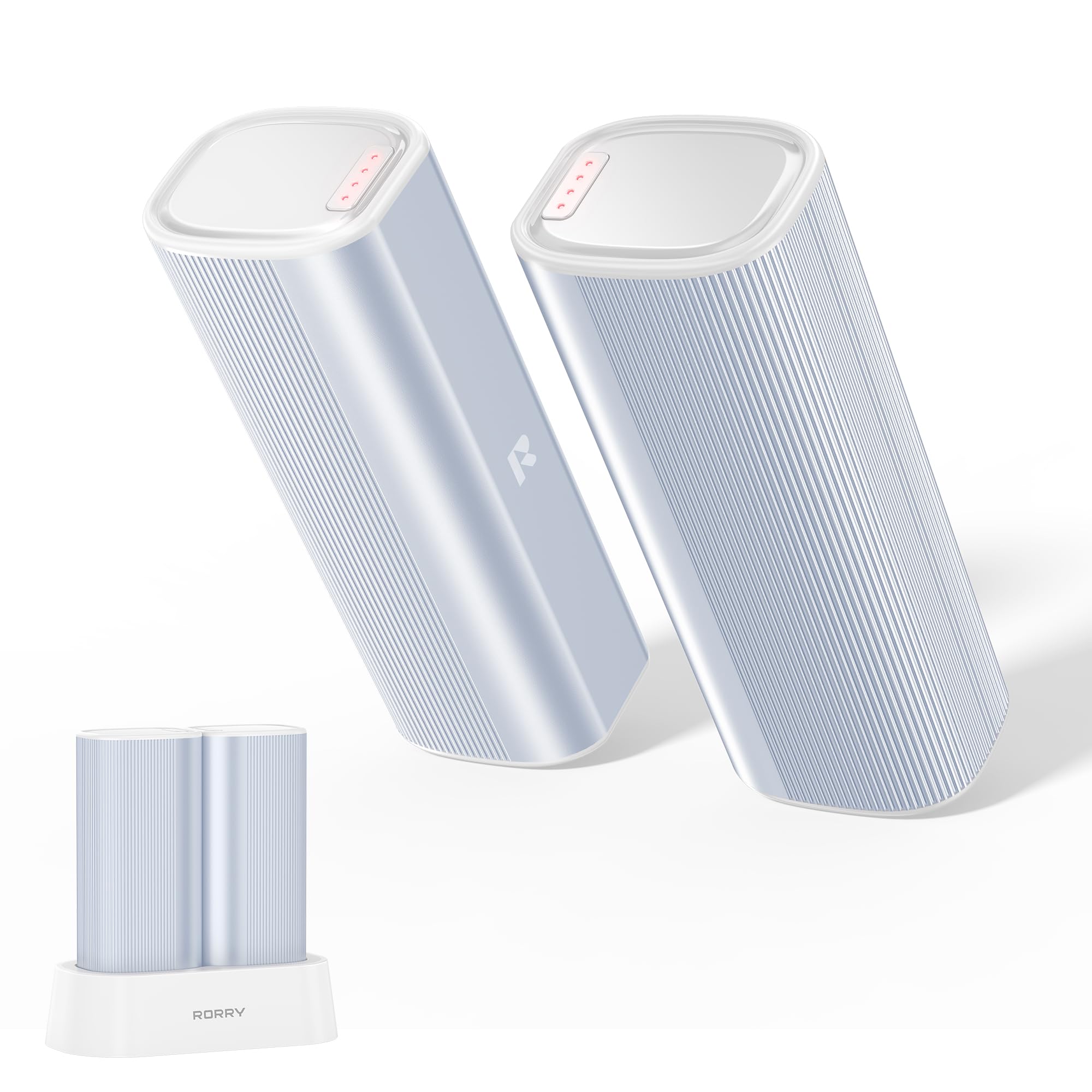 RORRY 充電式カイロ 電気式カイロ 360°全面発熱 3秒急速加熱 10000mAh大容量【2個セット・超軽量(105g)・4段階温度調節(40-55℃)】分離型 繰り返し使える 電子式ハンドウォーマー 10H長時間発熱 アルミ合金製 小型 持ち運びやすい USB充電と収納一体スタンド付 冬/通勤/通学/旅行/デスクワークなどに適用