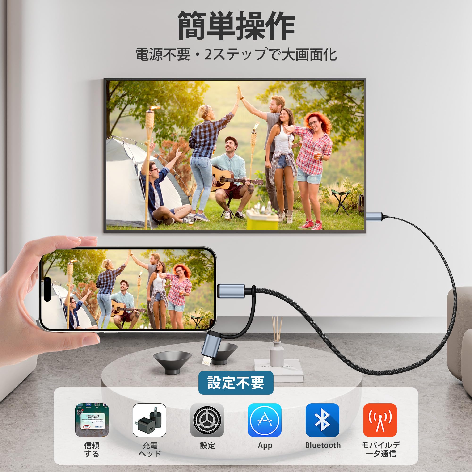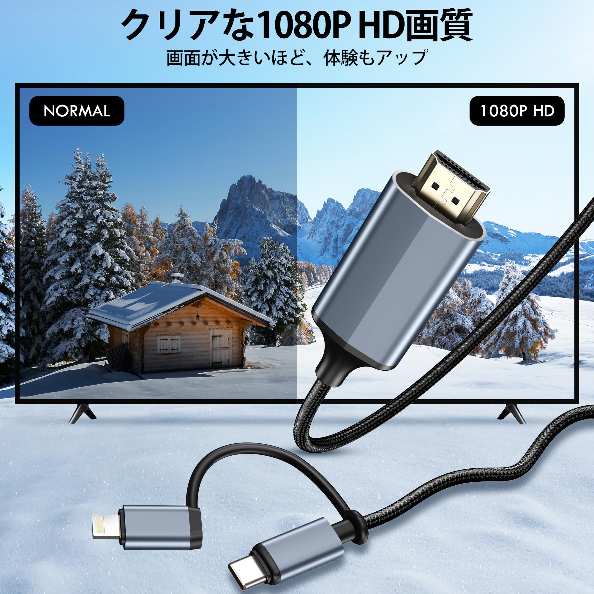 * [他社製品との差別化ポイント] 従来品を超える3大特徴:① Lightning/USB-C→HDMI 2-in-1設計 ② 1080p HD+高音質同時転送 ③ iPad/iPhoneクロスデバイス対応。没入感あるマルチデバイスストリーミングを実現。