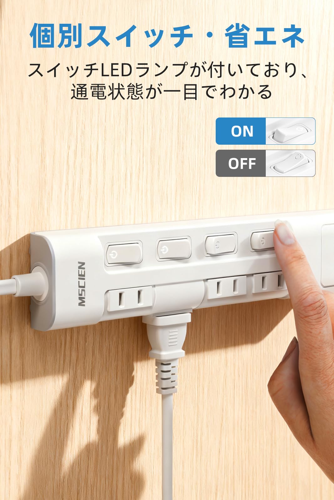 * 【個別スイッチ付き・節電・省エネ】:各ACコンセントの個別スイッチで、接続した機器の電源を個別にオン/オフ可能。使用しない機器の電源を切り、待機電力の節約に効果的です。スイッチLEDランプが付いており、通電状態が一目でわかって便利です。