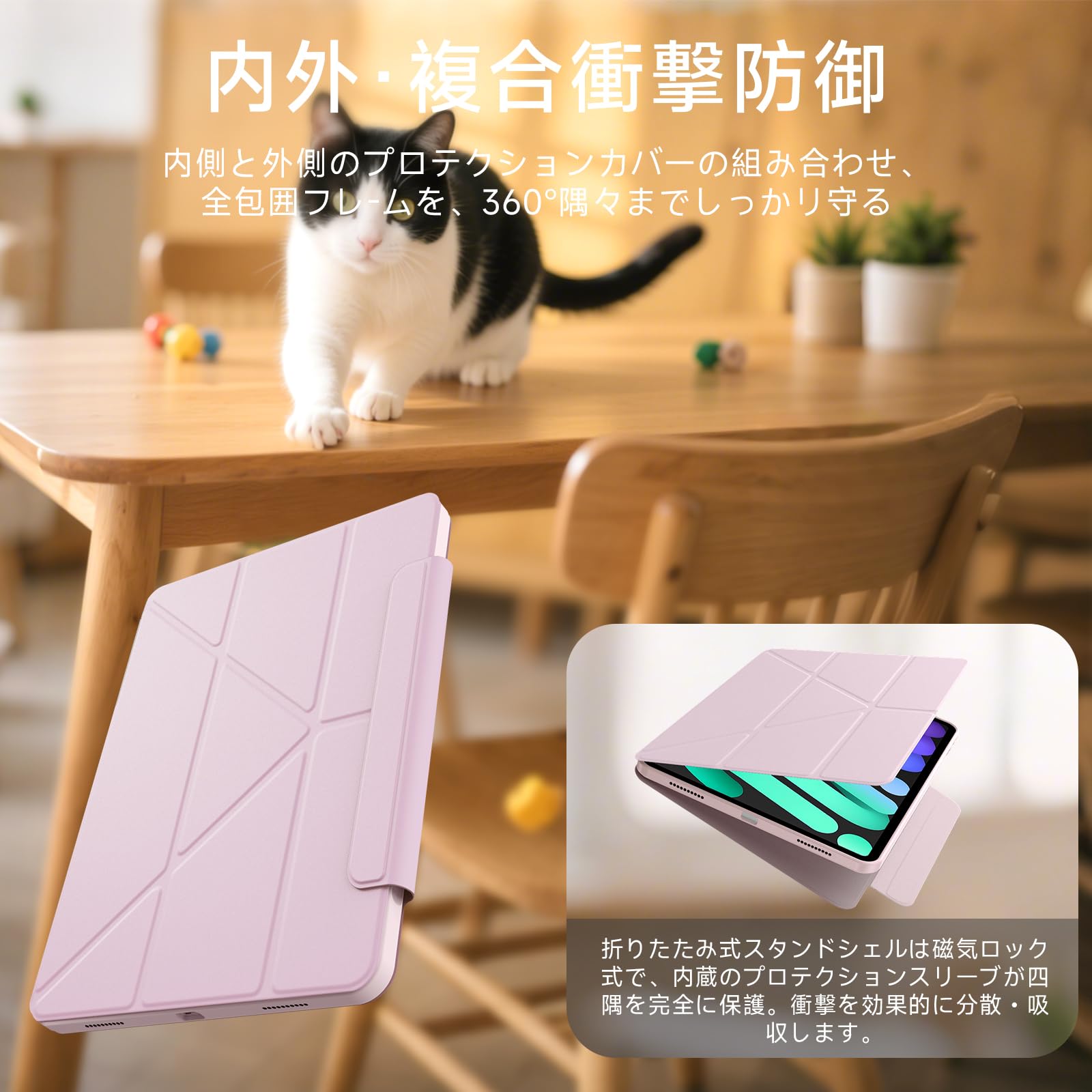 * 【内外·複合衝撃防御】外側マグネット式プロテクティブカバーと 内側透明プロテクションケースのダブル構造を採用。外側カバーは強力磁気吸着、内側ケースは本体の四隅と側面を完全に保護します。このダブルガード構造により、衝撃や落下時のダメージを軽減。画面やカメラレンズのキズ防止にも効果的です。