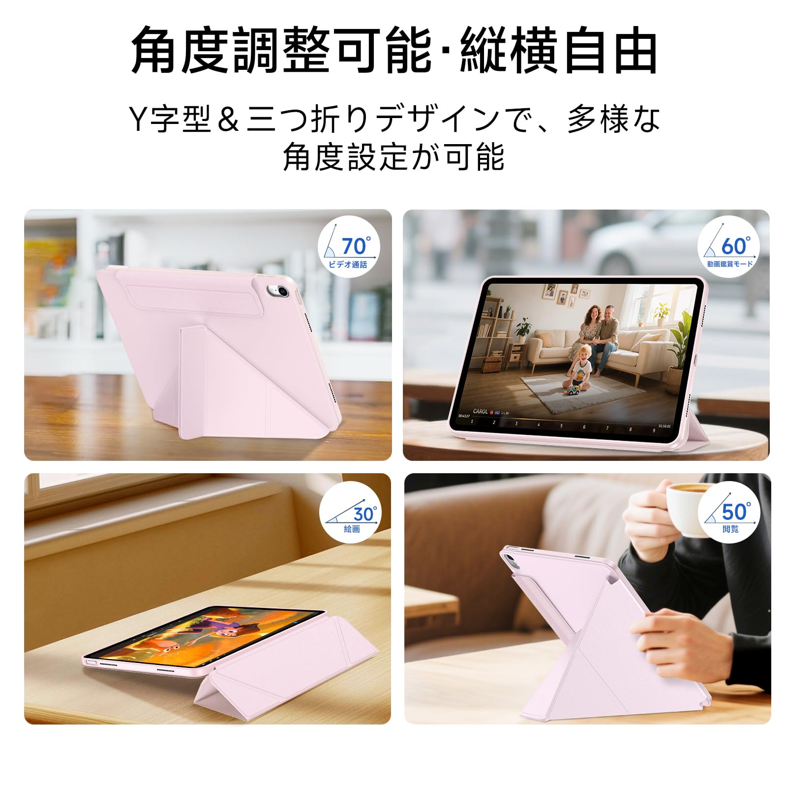 * 【角度調整可能·縦横自由】ケースの内側には独立した磁石ブロックが配置されており、互いに折りたたみや組み合わせが可能で、安定した三角形構造を形成します。横置きでも縦置きでも安定した視野を提供し、さまざまな角度調整によって多様な使用モードに対応します。絵を描く、動画視聴、ビデオ通話、記事や漫画の閲覧など、様々なシーンで活用できます。