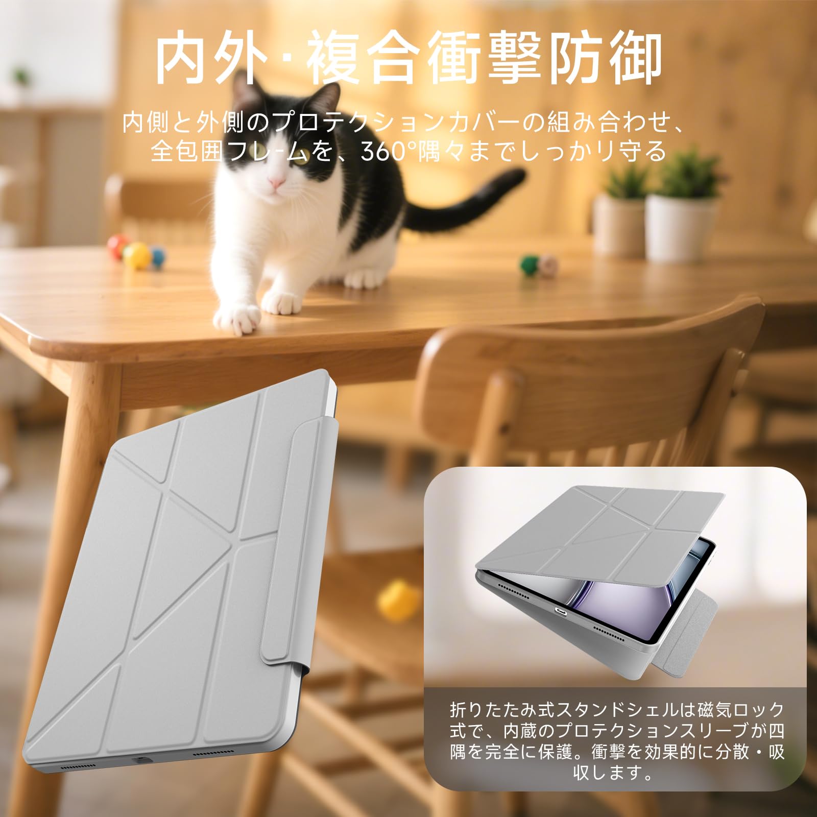 * 【対応機種】本品はiPad Air 11インチ(2024/2025、M3/M2)第6世代 対応 及びiPad Air 第5/4世代(2022/2020) 対応。ご注意: デバイスの背面にあるモデル番号をご確認ください。iPad Air 11インチ M3/M2(A3266/A3267/A3270/A2902/A2903/A2904)、iPad Air 第5/4世代(A2588/A2589/A2591/A2324/A2325/A2072/A2316)だけに適用されるため、ご購入前に必ずご確認ください。
