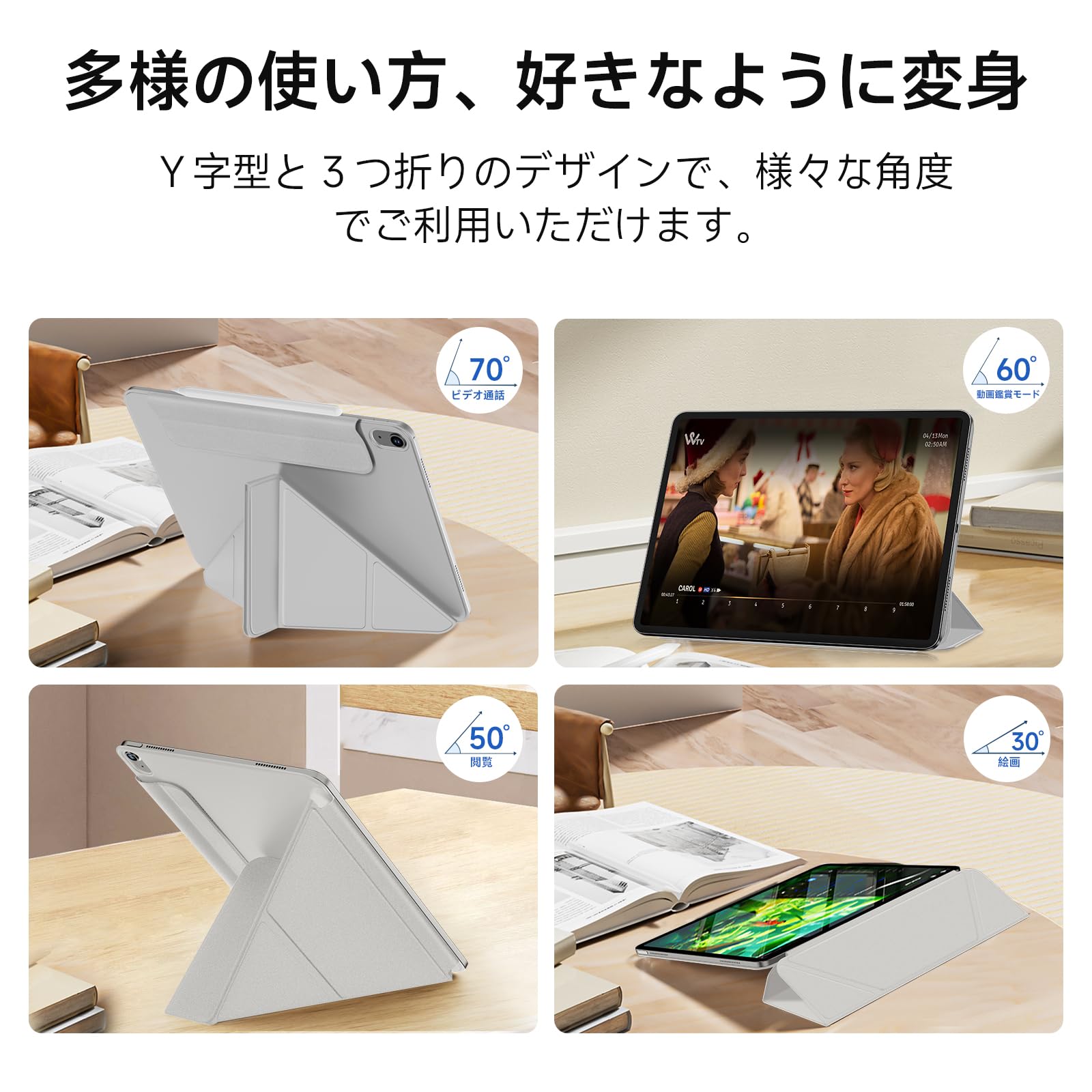 SANDUODD iPad 11世代 ケース (A16、2025) iPad 第10/11世代 (2022/2025)対応 強力マグネット吸着 横置&縦置 角度調整可能 三角形スタンド 安定感 超スリム 極薄 軽量 耐久性保護カバー オートスリープ/ウェイク対応 (ライトグレー)