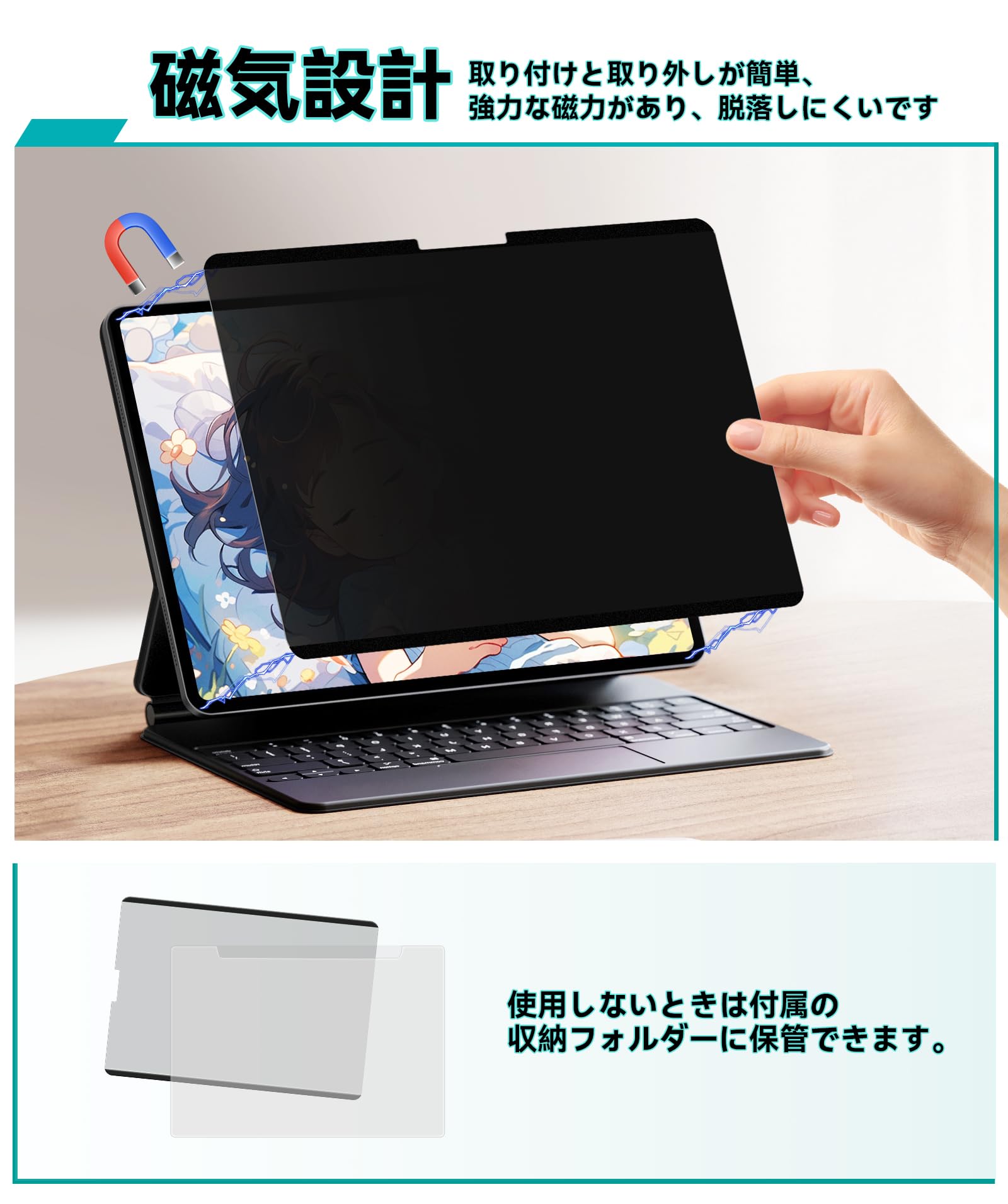 360度磁気覗き見防止フィルター iPad Air6/7世代 11インチ(M2/M3)2024/2025に対応 多方向覗き見防止保護フィルム ブルーライト防止 反射防止 プライバシーフィルター 強い磁気 着脱式 IPROKKO