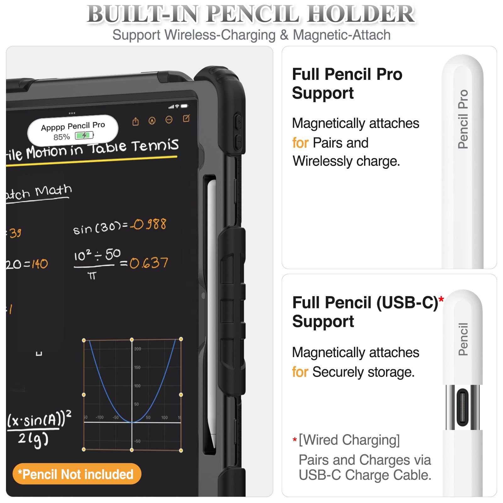 * 【ペン収納・優れた操作性】:ペンの紛失を防ぐペン収納付き、対応機種の2024年 13インチiPad Air(M2)ピッタリサイズに設計され、各ボタンの操作、充電などの機能はケースをつけたままスムーズに操作できます。