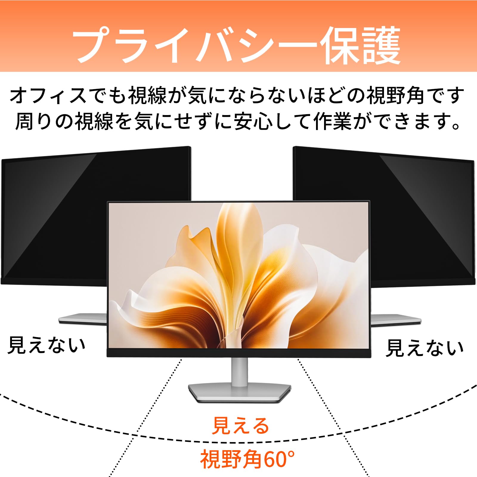 * [プライバシー保護] 正面からの視認性を保ちつつ、側面からの覗き見を防ぐことができます。約60度の視野角(左右30度)を越えると、画面が暗く表示されるため、職場や自宅で作業をしていても情報の漏洩リスクを回避することができます。対応サイズ:21.5インチ 縦横比 16:9 フィルター部分のみの寸法:476mm x 268mm。