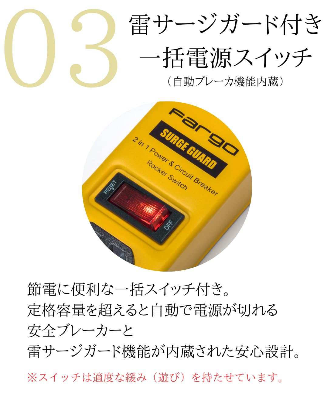 * 安全ブレーカー内蔵の一括スイッチ。使用電力がオーバーすると自動で電源OFF。