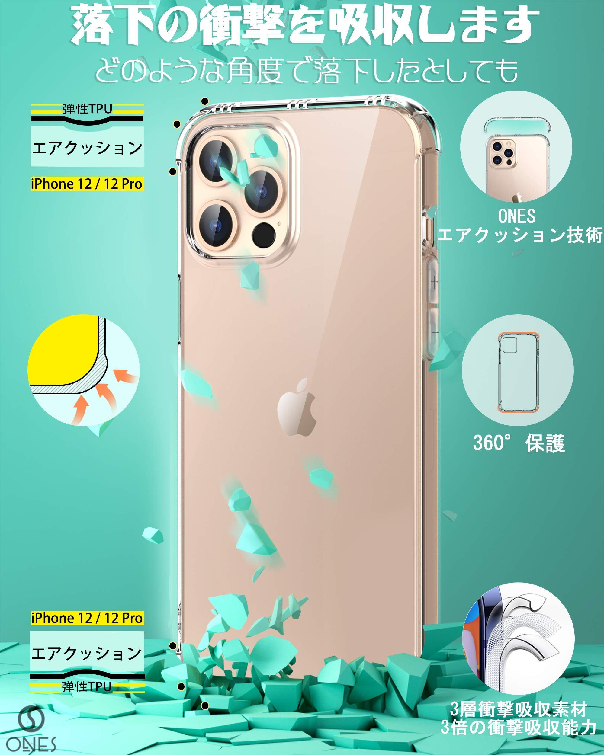 ONES iPhone 12Pro/12 ケース 6.1インチ用 HD全透明 米軍MIL規格 超耐衝撃 『 360°エアバッグ、半密閉音室 』〔 画面 · レンズ保護、滑り止め、ストラップホール 〕薄型 Qi充電 超軽量 衝撃吸収 HQ·TPU クリア カバー
