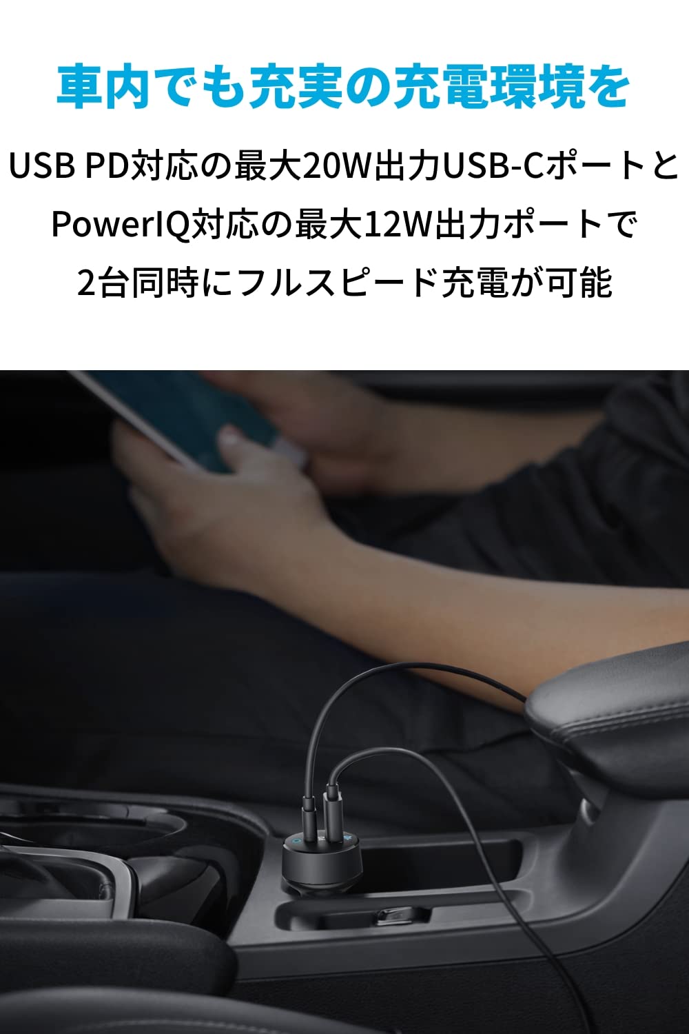 Anker PowerDrive PD 2(32W 2ポート カーチャージャー)【USB Power Delivery対応/PowerIQ搭載/コンパクトサイズ】iPhone 16 シリーズ、iPad、Galaxy、Xperiaその他Android各種対応