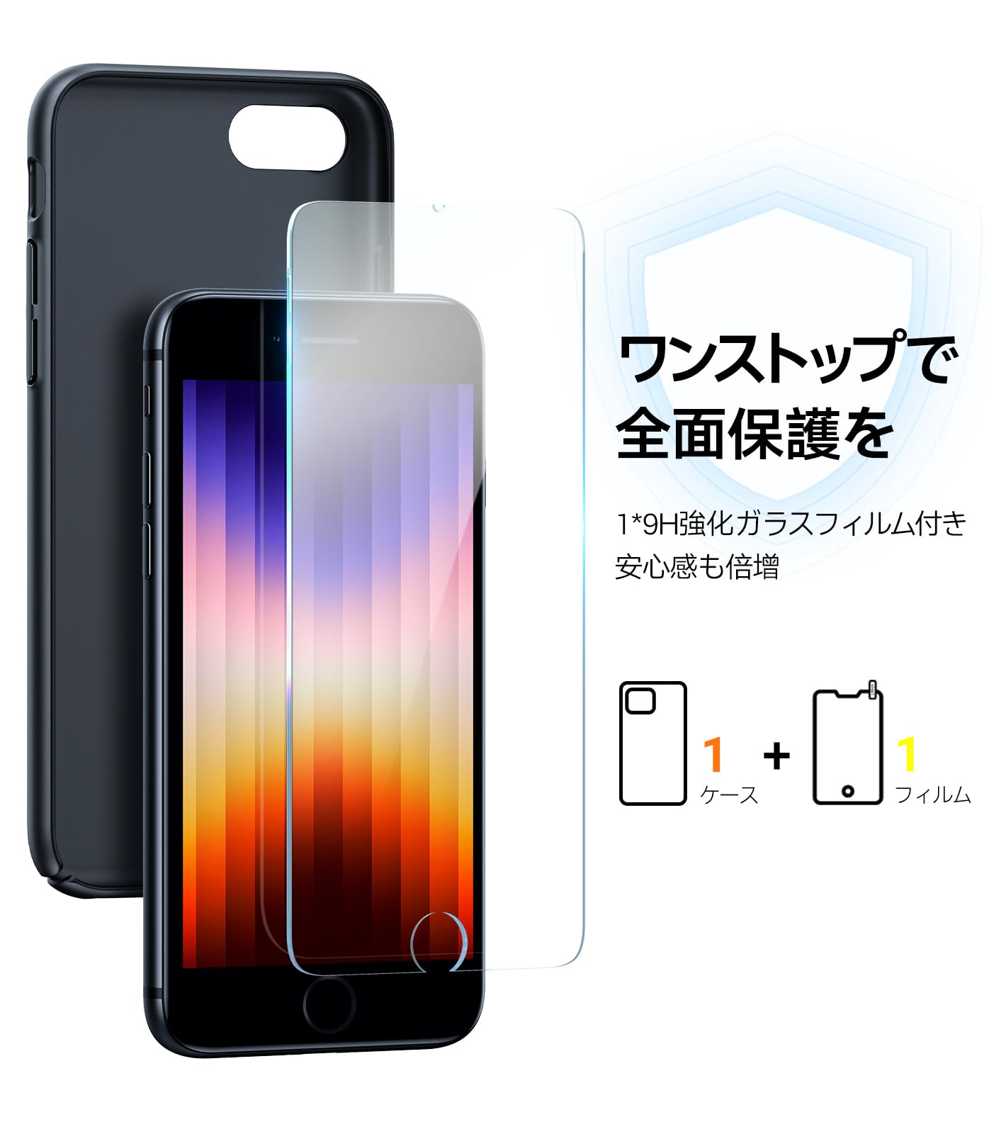 【超薄・マット質感】TORRAS iPhone se3 ケース 第3世代 iPhone se 2・8・7 ケース 薄型 4.7インチ 対応 PC [ ガラスフィルム付属] 指紋防止 擦り傷防止 耐衝撃カバー (ブラック) Wisdom Series