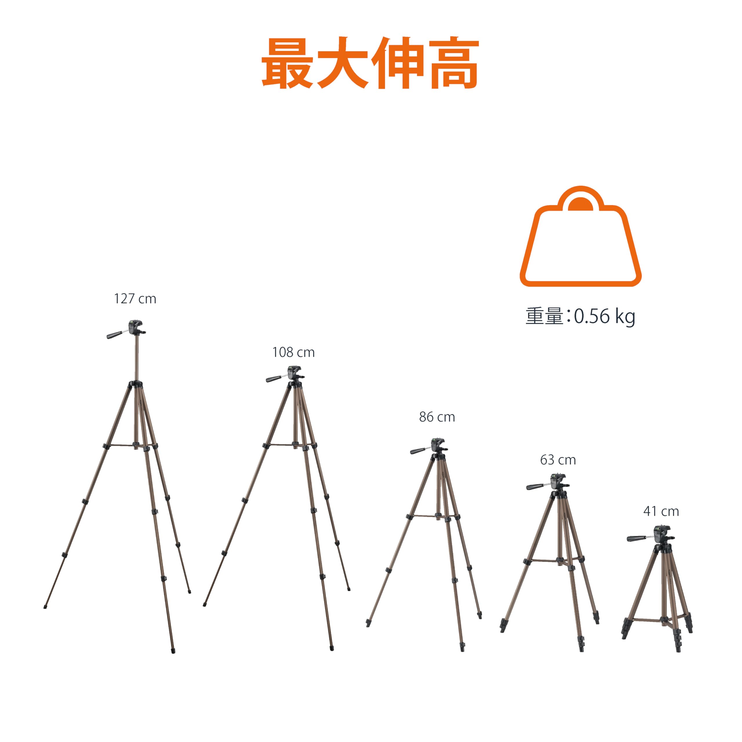 * 製品の寸法: 8.4 x 7.4 x 42.8cm (折りたたみ時の長さ x 幅 x 高さ)。最大高127cm (50インチ)。