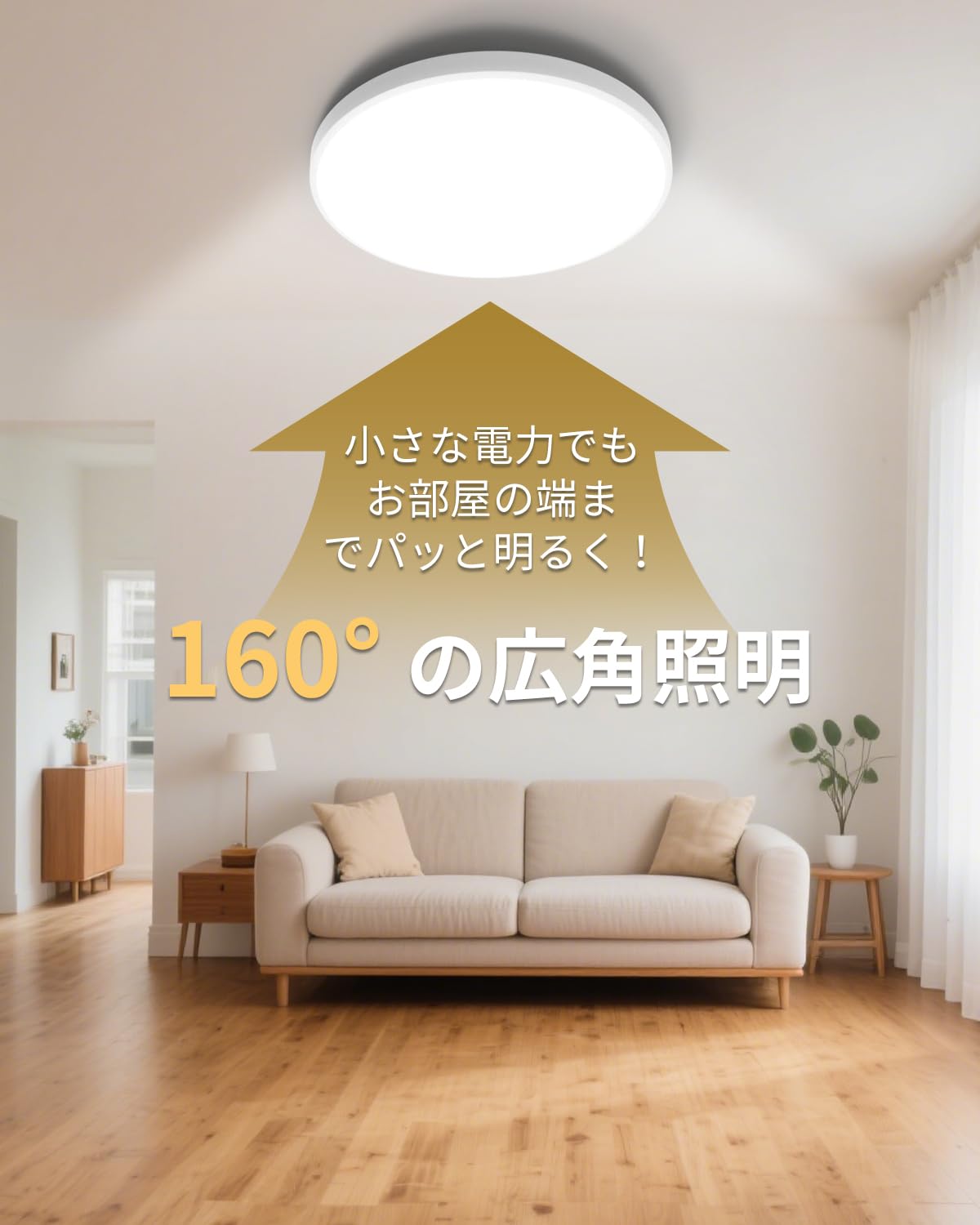 * 【高輝度】4600lmの強力な明るさで、お部屋全体を昼間のように照らします。読書や作業にも最適で、快適な空間を実現。広い空間でも十分な光量を確保します。