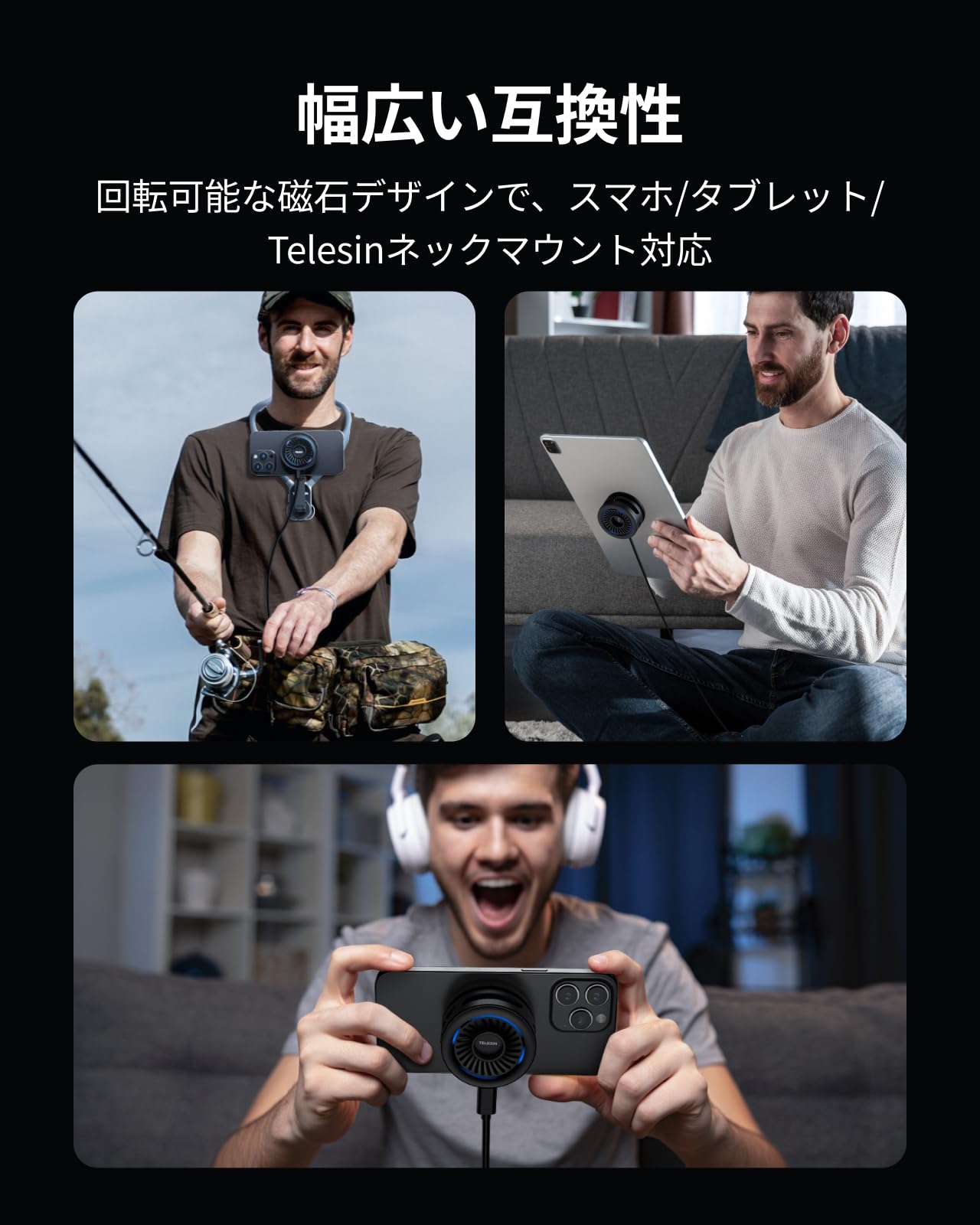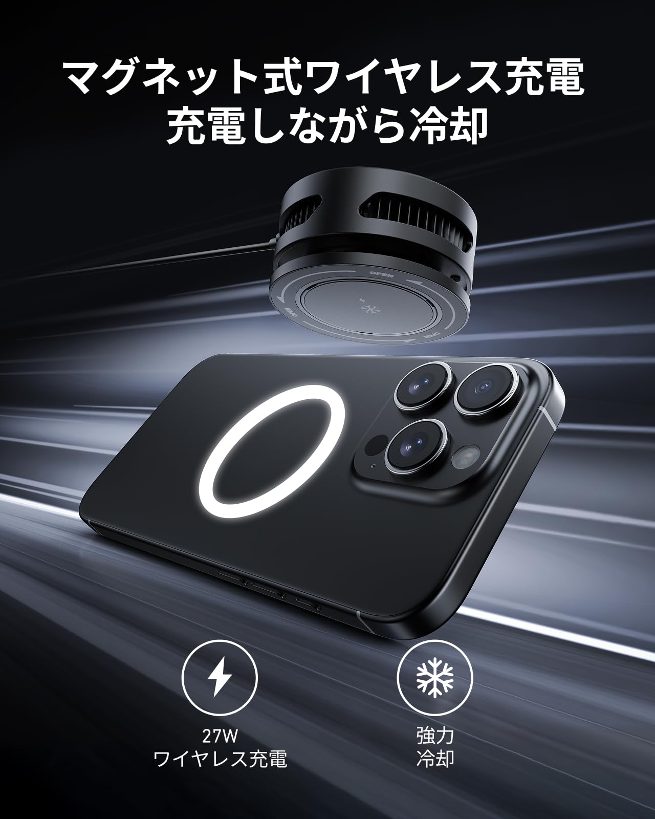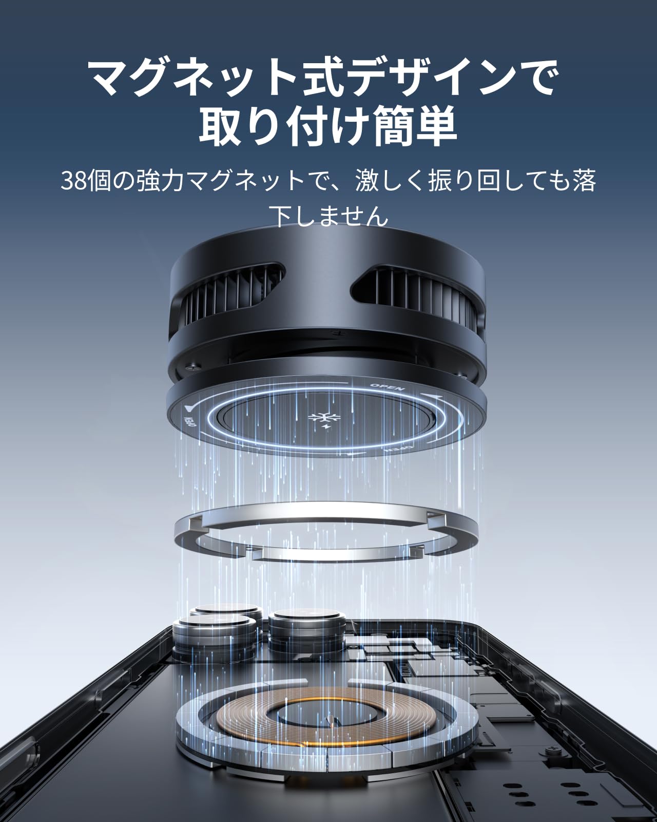 * 【プロ級磁着安定性】激しい操作でもビクともしない。スマートフォン 冷却ファンは38個のネオジム磁石を内蔵。スマホを振り回すシューティングゲームや釣り竿に固定した動画撮影でも、ガッチリ密着。落下リスクゼロの安心設計。